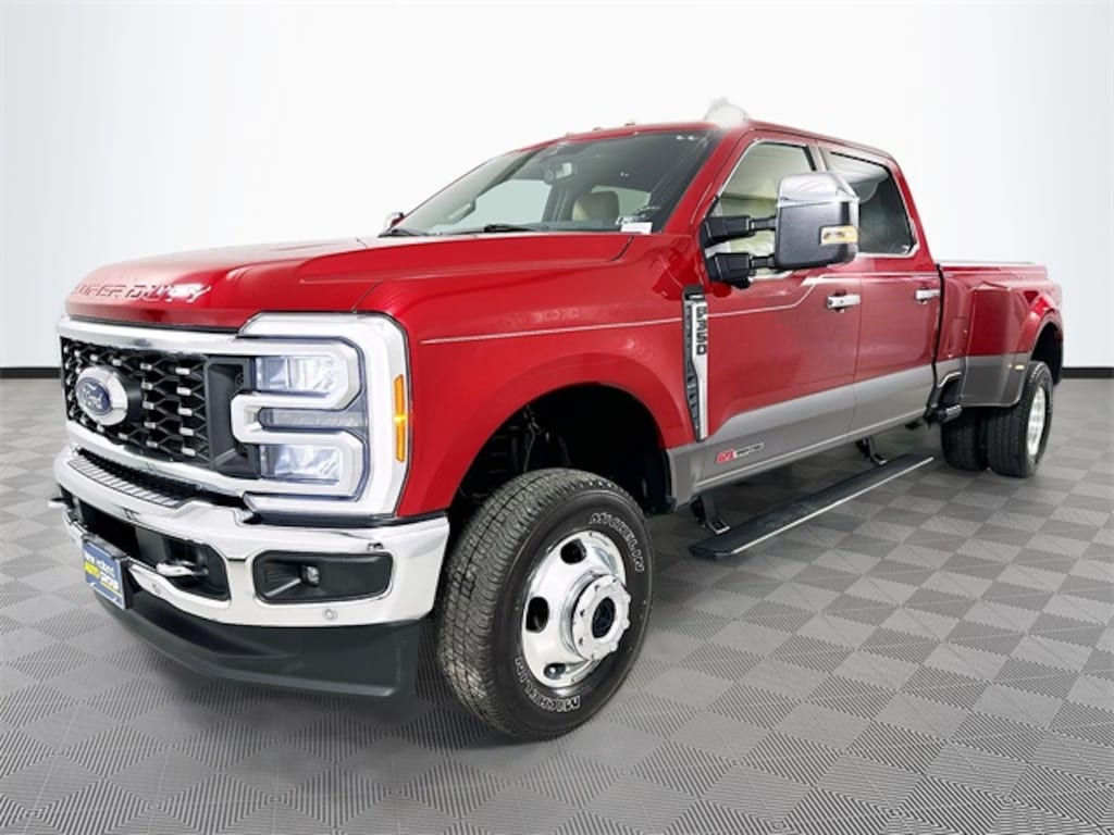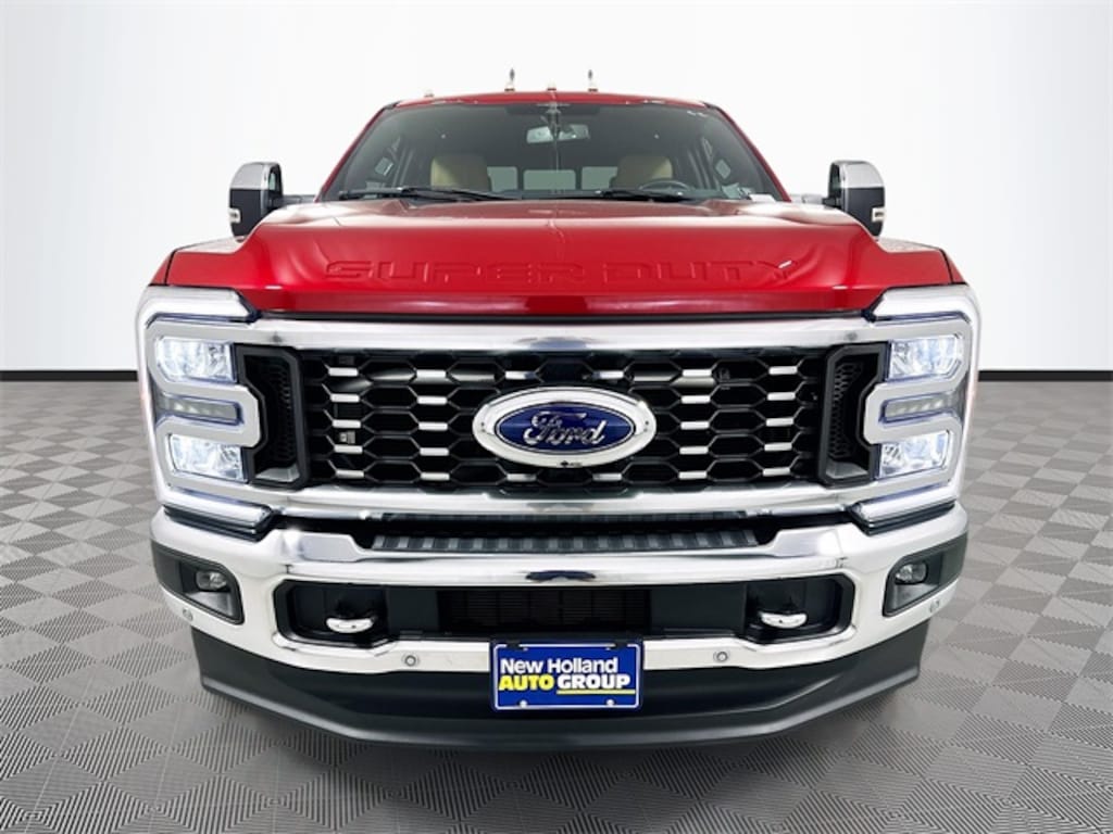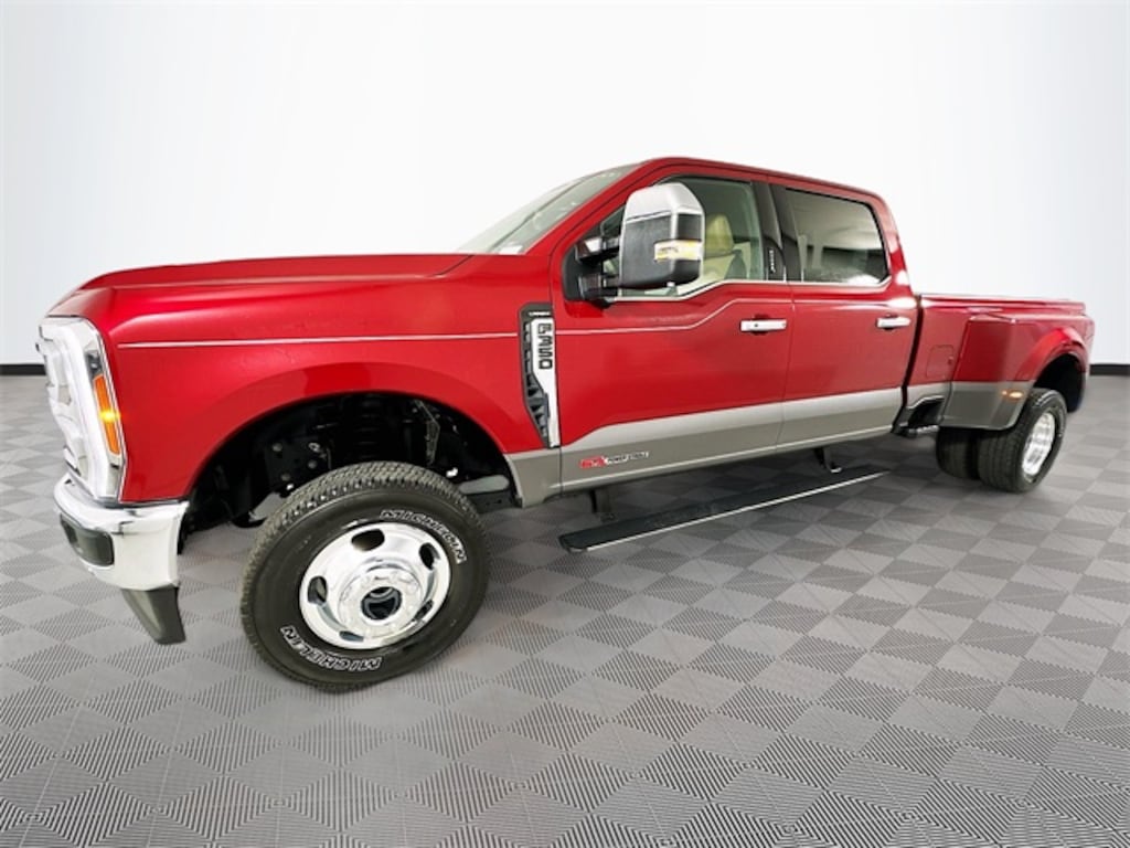 F-350 SuperDuty Lariat, Ford Gold Certified Certified, 4D Crew Cab, Power Stroke 6.7L V8 DI 32V OHV Turbodiesel, 4WD, Rapid Red Metallic Tinted Clearcoat, Baja Leather, 4-Way Adjustable Headrests, 5th Wheel/Gooseneck Hitch Prep Package, Camper Package, Chrome Door Handles, Chrome Exhaust Tip, Chrome Package, Front Sensing System, Front Splash Guards/Mud Flaps (Pre-Installed), GVWR: 14,000 lb Payload Package, Head-Up Display, Heavy-Service Front Suspension Package, Lariat Ultimate Package, Navigation system: Connected Navigation, Order Code 628A, Power-Deployable Running Boards, Pro Trailer Backup Assist, Pro Trailer Hitch Assist, Radio: B&O Unleashed Sound System by Bang & Olufsen, Rear Stabilizer Bar, SiriusXM Radio w/360L, SYNC 4 w/Enhanced Voice Recognition, Tailgate Step & Handle, Tow Technology Package, Unique Chrome Mirror Caps, Upfitter Switches (6), Wireless Charging Pad, 17" Forged Polished Aluminum Wheels, 190 Amp Alternator, 3.55 Axle Ratio, 4-Wheel Disc Brakes, 410 Amp Dual Alternators, 8 Speakers, ABS brakes, Adjustable pedals, Air Conditioning, Alloy wheels, AM/FM radio: SiriusXM with 360L, Auto High-beam Headlights, Auto tilt-away steering wheel, Auto-dimming Rear-View mirror, Automatic temperature control, Brake assist, Bumpers: chrome, Compass, Delay-off headlights, Driver door bin, Driver vanity mirror, Dual 68 AH/65 AGM Batteries, Dual front impact airbags, Dual front side impact airbags, Dual rear wheels, Electronic Stability Control, Emergency communication system: SYNC 4 911 Assist, Engine Block Heater, Exterior Parking Camera Rear, Flow-Through Console, Front anti-roll bar, Front Bucket Seats, Front Center Armrest, Front dual zone A/C, Front fog lights, Front Leather-Trimmed 40/Console/40 Seats, Front reading lights, Front Wheel Well Liners (Pre-Installed), Fully automatic headlights, Garage door transmitter, Heated door mirrors, Heated front seats, Heated rear seats, Heated steering wheel, Illuminated entry, Lane-Keeping System, Leather steering wheel, Limited Slip w/3.55 Axle Ratio, Limited Slip w/3.73 Axle Ratio, Limited Slip w/4.30 Axle Ratio, Low tire pressure warning, Memory seat, Outside temperature display, Overhead airbag, Overhead console, Panic alarm, Passenger door bin, Passenger vanity mirror, Pedal memory, Post-Collision Braking, Power door mirrors, Power driver seat, Power passenger seat, Power steering, Power windows, Radio: B&O Sound System by Bang & Olufsen, Rain sensing wipers, Rapid-Heat Supplemental Cab Heater, Rear anti-roll bar, Rear reading lights, Rear seat center armrest, Rear Splash Guards/Mud Flaps (Pre-Installed), R