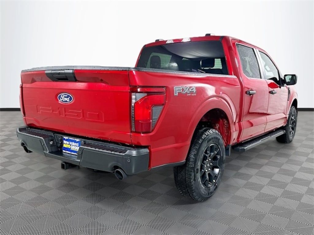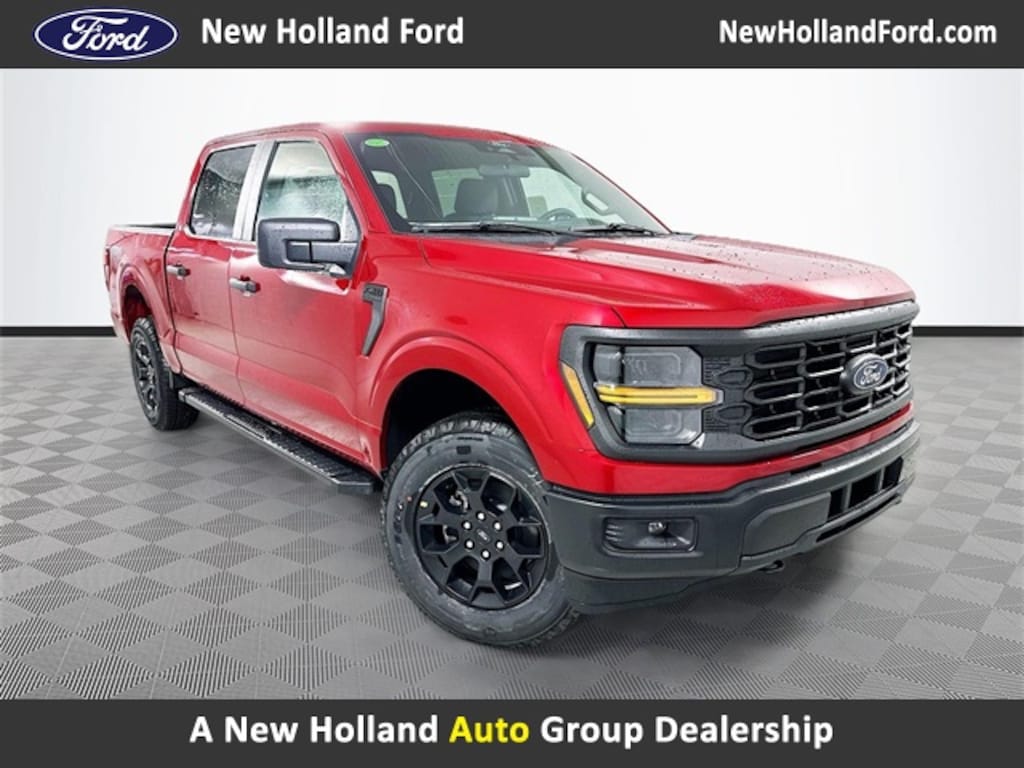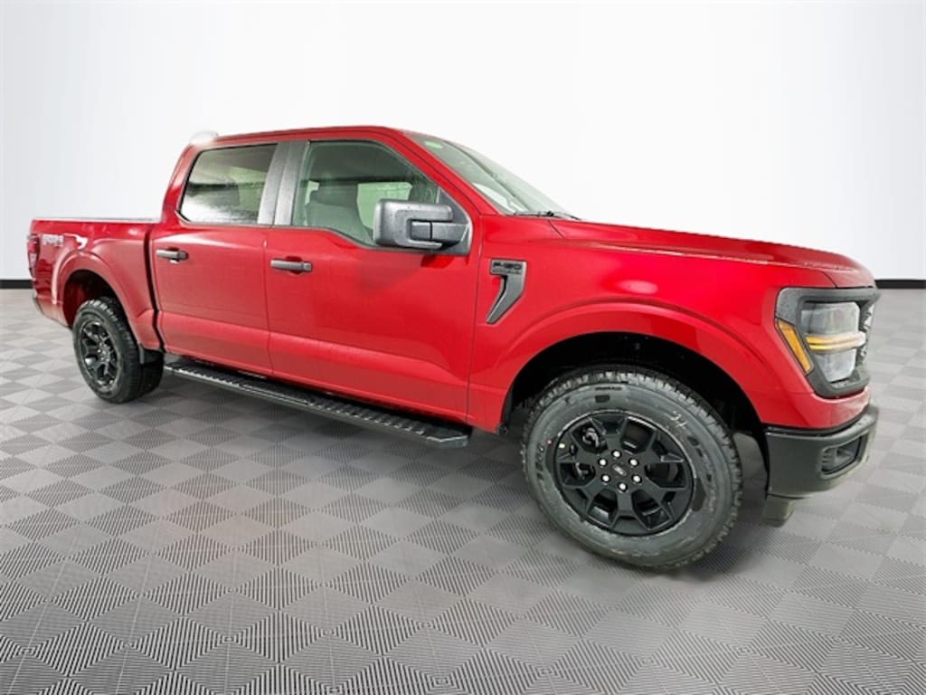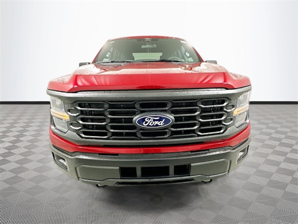 Red Metallic 2025 Ford F-150 STX 4WD 2.7L V6 EcoBoost 4D SuperCrew 10-Speed Automatic 4WD, 3.55 Axle Ratio, 4-Wheel Disc Brakes, 6 Speakers, 6" Black Running Boards, ABS brakes, Air Conditioning, Alloy wheels, AM/FM radio: SiriusXM with 360L, Argent Front/Rear Bumper, Auto High-beam Headlights, Brake assist, Bumpers: body-color, Compass, Delay-off headlights, Driver door bin, Dual Exhaust w/Black Tips, Dual front impact airbags, Dual front side impact airbags, Electronic Stability Control, Emergency communication system: SYNC 4 911 Assist, Equipment Group 201A FX4, Front anti-roll bar, Front Bucket Seats, Front Center Armrest, Front License Plate Bracket, Front reading lights, Front wheel independent suspension, Fully automatic headlights, FX4 Box Decal, GVWR: 6,650 lbs Payload Package, Heated door mirrors, Illuminated entry, Integrated Trailer Brake Controller, LED Fog Lamps w/LED Cornering Lamp, Low tire pressure warning, Monotube Rear Shocks, Occupant sensing airbag, Off-Road Tuned Front Shock Absorbers, Outside temperature display, Overhead airbag, Overhead console, Panic alarm, Passenger door bin, Passenger vanity mirror, Power door mirrors, Power steering, Power windows, Radio data system, Radio: AM/FM Stereo w/SiriusXM 360L, Rear Parking Sensors, Rear step bumper, Rear window defroster, Remote keyless entry, Security system, Speed control, Split folding rear seat, Steering wheel mounted audio controls, STX Badge in Fender Vent, SYNC 4 w/Enhanced Voice Recognition, Tachometer, Telescoping steering wheel, Tilt steering wheel, Traction control, Tray Style Floor Liner w/Carpet Mats, Trip computer, Unique Cloth 40/Console/40 Front Seats, Variably intermittent wipers, Voltmeter, Wheels: 18" Black Painted Aluminum, Wheels: 18" Gloss Black, 4WD.