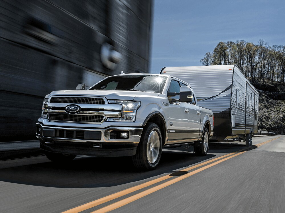If you really want a vehicle designed for brawny performance, we recommend you upgrade to the Ford F-150 King Ranch. This trim comes standard with a 5.0L V8 engine that generates up to 400 horsepower and 410 lb-ft of torque. With such a large engine, you can expect to tow up to 13,000 pounds with ease.