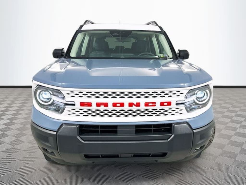 Azure Gray Metallic Tri-Coat 2025 Ford Bronco Sport Heritage 4WD 1.5L EcoBoost 4D Sport Utility 8-Speed Automatic Convenience Package, Equipment Group 250A, Front Driver/Passenger Seat Back Map Pockets, Heated 8-Way Power Driver's Seat, LED Fog Lamps, Premium Wrapped Steering Wheel, Universal Garage Door Opener (UGDO), 2nd Row Carpeted Seatback, 4-Wheel Disc Brakes, 6 Speakers, ABS brakes, Air Conditioning, Alloy wheels, AM/FM radio: SiriusXM, AM/FM Stereo, Auto High-beam Headlights, Automatic temperature control, Brake assist, Cargo Mat, Compass, Delay-off headlights, Driver door bin, Driver vanity mirror, Dual front impact airbags, Dual front side impact airbags, Electronic Stability Control, Emergency communication system: SYNC 4 911 Assist, Four wheel independent suspension, Front & Rear Floor Liners w/o Carpet Mats, Front anti-roll bar, Front Bucket Seats, Front Center Armrest, Front reading lights, Fully automatic headlights, Heated door mirrors, Illuminated entry, Knee airbag, Low tire pressure warning, Occupant sensing airbag, Outside temperature display, Overhead airbag, Overhead console, Panic alarm, Passenger door bin, Passenger vanity mirror, Plaid Cloth Front Bucket Seats, Power door mirrors, Power steering, Power windows, Radio data system, Rear anti-roll bar, Rear Parking Sensors, Rear reading lights, Rear seat center armrest, Rear window defroster, Rear window wiper, Remote keyless entry, Security system, SiriusXM, Speed control, Speed-sensing steering, Speed-Sensitive Wipers, Split folding rear seat, Steering wheel mounted audio controls, SYNC 4 w/Enhanced Voice Recognition, Tachometer, Telescoping steering wheel, Tilt steering wheel, Traction control, Trip computer, Variably intermittent wipers, Wheels: 17" Oxford White-Painted Aluminum, Convenience Package, Equipment Group 250A, Front Driver/Passenger Seat Back Map Pockets, Heated 8-Way Power Driver's Seat, LED Fog Lamps, Premium Wrapped Steering Wheel, Universal Garage Door Opener (UGDO).