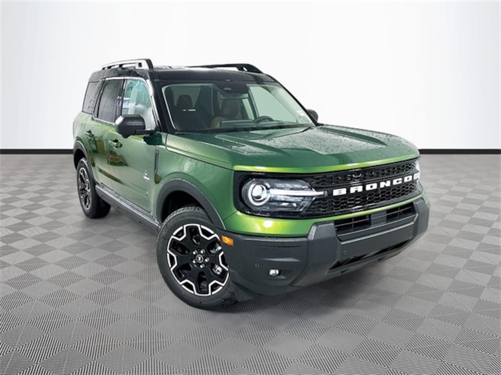 Green Metallic 2025 Ford Bronco Sport Outer Banks 4WD 1.5L EcoBoost 4D Sport Utility 8-Speed Automatic 360-Degree Camera w/Trail & Split View, 4-Wheel Disc Brakes, 6 Speakers, ABS brakes, Air Conditioning, Alloy wheels, AM/FM radio: SiriusXM, AM/FM Stereo, Auto High-beam Headlights, Auto-dimming Rear-View mirror, Automatic temperature control, B&O Sound System by Bang & Olufsen, Brake assist, Compass, Connected Navigation, Delay-off headlights, Driver door bin, Driver vanity mirror, Dual front impact airbags, Dual front side impact airbags, Electronic Stability Control, Emergency communication system: SYNC 4 911 Assist, Equipment Group 300A, Four wheel independent suspension, Front anti-roll bar, Front Bucket Seats, Front Center Armrest, Front Driver/Passenger Seat Back Map Pockets, Front dual zone A/C, Front fog lights, Front License Plate Bracket, Front Parking Sensors, Front reading lights, Fully automatic headlights, Garage door transmitter, HD Radio, Heated door mirrors, Heated front seats, Heated steering wheel, Illuminated entry, Knee airbag, Low tire pressure warning, Memory seat, Occupant sensing airbag, Outer Banks Tech Package+, Outside temperature display, Overhead airbag, Overhead console, Panic alarm, Passenger door bin, Passenger vanity mirror, Power door mirrors, Power driver seat, Power passenger seat, Power steering, Power windows, Premium Trimmed Front Bucket Seats w/Ebony/Roast, Radio data system, Rain sensing wipers, Rear anti-roll bar, Rear Parking Sensors, Rear reading lights, Rear seat center armrest, Rear window defroster, Rear window wiper, Remote keyless entry, Reverse Brake Assist, Security system, SiriusXM, Speed control, Speed-sensing steering, Speed-Sensitive Wipers, Split folding rear seat, Steering wheel mounted audio controls, SYNC 4 w/Enhanced Voice Recognition, Tachometer, Telescoping steering wheel, Tilt steering wheel, Traction control, Trip computer, Variably intermittent wipers, Wheels: 18" Ebony Black-Painted Aluminum.