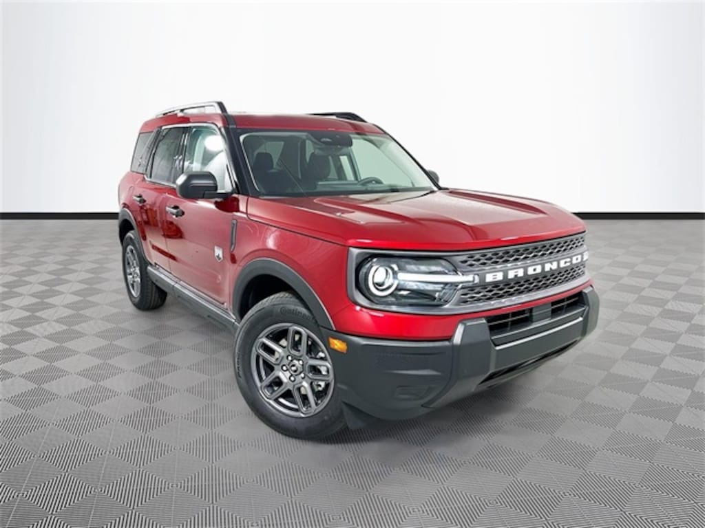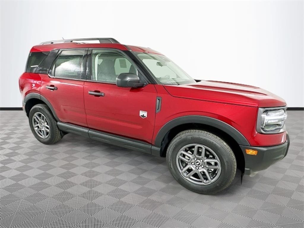 Ruby Red 2025 Ford Bronco Sport Big Bend 4WD 1.5L EcoBoost 4D Sport Utility Automatic 4-Wheel Disc Brakes, 6 Speakers, ABS brakes, Air Conditioning, Alloy wheels, AM/FM radio: SiriusXM, AM/FM Stereo, Auto High-beam Headlights, Automatic temperature control, Brake assist, Cargo Mat, Cloth w/Easy-to-Clean Front Bucket Seats, Compass, Delay-off headlights, Driver door bin, Driver vanity mirror, Dual front impact airbags, Dual front side impact airbags, Electronic Stability Control, Emergency communication system: SYNC 4 911 Assist, Equipment Group 200A, Four wheel independent suspension, Front & Rear Floor Liners w/o Carpet Mats, Front anti-roll bar, Front Bucket Seats, Front Center Armrest, Front reading lights, Fully automatic headlights, Heated door mirrors, Illuminated entry, Keyless Entry Keypad (DIO), Knee airbag, Low tire pressure warning, Occupant sensing airbag, Outside temperature display, Overhead airbag, Overhead console, Panic alarm, Passenger door bin, Passenger vanity mirror, Power door mirrors, Power steering, Power windows, Radio data system, Rear anti-roll bar, Rear Parking Sensors, Rear reading lights, Rear seat center armrest, Rear window defroster, Rear window wiper, Remote keyless entry, Security system, SiriusXM, Speed control, Speed-sensing steering, Speed-Sensitive Wipers, Split folding rear seat, Steering wheel mounted audio controls, SYNC 4 w/Enhanced Voice Recognition, Tachometer, Telescoping steering wheel, Tilt steering wheel, Traction control, Trip computer, Variably intermittent wipers, Wheels: 17" Carbonized Gray-Painted Aluminum.