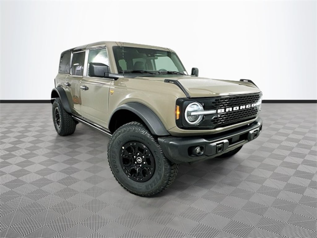 Gray 2025 Ford Bronco Badlands 4WD 2.7L EcoBoost V6 4D Sport Utility 10-Speed Automatic 2-Door Intelligent Access w/Lock/Unlock, 4-Wheel Disc Brakes, 7 Speakers, ABS brakes, Air Conditioning, Alloy wheels, AM/FM radio: SiriusXM with 360L, AM/FM Stereo, Ambient Footwell Lighting, Auto High-Beam Headlamps, Auto High-beam Headlights, Auto-dimming Rear-View mirror, Black Appearance Package, Black Molded-In-Color Door Handles, Black Molded-In-Color Fender Flares, Black Molded-In-Color Sideview Mirror Caps, Black-Painted Molded-In-Color Grille, BLIS Blind Spot Information System, Brake assist, Compass, Connected Navigation, Delay-off headlights, Dr & Pass Illuminated Sliding Visor Vanity Mirrors, Driver door bin, Driver vanity mirror, Dual front impact airbags, Dual front side impact airbags, Dual Smart Charging USB Ports, Dual-Zone Electronic Automatic Temperature Control, Electronic Stability Control, Emergency communication system: 911 Assist, Engine Block Heater, Equipment Group 332A Mid Package, Exterior Parking Camera Rear, Front & Rear Floor Liners w/o Carpet Floor Mats, Front anti-roll bar, Front Bucket Seats, Front Center Armrest, Front fog lights, Front reading lights, Front Row Heated Seats, Front wheel independent suspension, Fully automatic headlights, Hard Top Sound Deadening Headliner, Heated door mirrors, Heated front seats, Heated steering wheel, High Clearance Fender Flares, High Clearance Suspension, Illuminated entry, Integrated roll-over protection, Lane-Keeping System, Leather Shift Knob, Low tire pressure warning, Marine Grade Vinyl Heated Bucket Seats, Occupant sensing airbag, Outside temperature display, Overhead airbag, Overhead console, Panic alarm, Passenger door bin, Passenger vanity mirror, Position-Sensitive Bilstein Shock Absorbers, Power door mirrors, Power Outlet - Back Side of Center Floor Console, Power steering, Power windows, Pre-Collision Assist w/Automatic Emergency Braking, Radio data system, Rear Parking Sensors, Rear-View Camera, Rear-Window Defroster & Washer, Remote keyless entry, Sasquatch Package, Second Row Panel Roof Bag Storage (DIO), Security system, Shadow Black Painted Hard Top, SiriusXM w/360L, Speed control, Split folding rear seat, Steering wheel mounted audio controls, SYNC 4, Tachometer, Telescoping steering wheel, Tilt steering wheel, Traction control, Trailer Tow Package (DIO), Trip computer, Variably intermittent wipers, Voltmeter, Wheels: 17" Carbonized Gray Painted Aluminum, Wheels: 17" Carbonized Gray-Painted Aluminum.