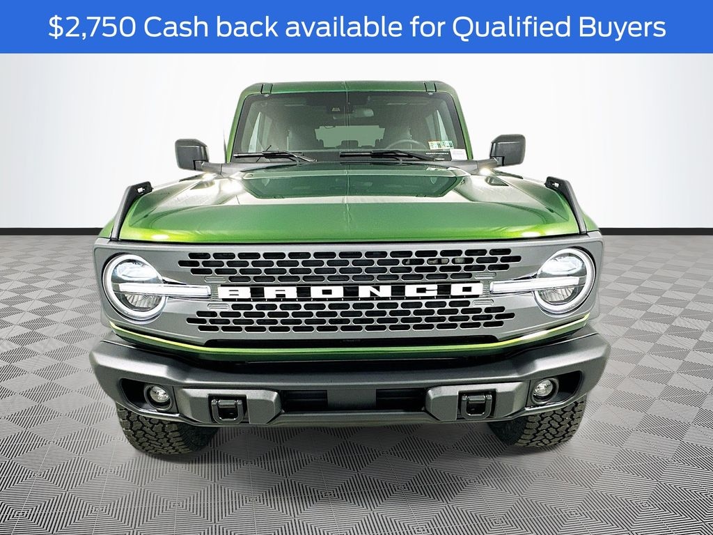 Eruption Green Metallic 2025 Ford Bronco Badlands 4WD 2.7L EcoBoost V6 4D Sport Utility 10-Speed Automatic 2-Door Intelligent Access w/Lock/Unlock, Ambient Footwell Lighting, Connected Navigation, Dr & Pass Illuminated Sliding Visor Vanity Mirrors, Dual Smart Charging USB Ports, Dual-Zone Electronic Automatic Temperature Control, Equipment Group 332A Mid Package, Front Row Heated Seats, Power Outlet - Back Side of Center Floor Console, Rear Parking Sensors, 4-Wheel Disc Brakes, 7 Speakers, ABS brakes, Air Conditioning, Alloy wheels, AM/FM radio: SiriusXM with 360L, AM/FM Stereo, Auto High-Beam Headlamps, Auto High-beam Headlights, Auto-dimming Rear-View mirror, BLIS Blind Spot Information System, Brake assist, Carbonized Gray Molded-In-Color Hard Top, Compass, Delay-off headlights, Driver door bin, Driver vanity mirror, Dual front impact airbags, Dual front side impact airbags, Electronic Stability Control, Emergency communication system: 911 Assist, Engine Block Heater, Exterior Parking Camera Rear, Front anti-roll bar, Front Bucket Seats, Front Center Armrest, Front fog lights, Front reading lights, Front wheel independent suspension, Fully automatic headlights, Heated door mirrors, Heated front seats, Heated steering wheel, High Clearance Fender Flares, High Clearance Suspension, Illuminated entry, Integrated roll-over protection, Internet access capable: FordPass Connect, Lane-Keeping System, Leather Shift Knob, Low tire pressure warning, Marine Grade Vinyl Heated Bucket Seats, Occupant sensing airbag, Outside temperature display, Overhead airbag, Overhead console, Panic alarm, Passenger door bin, Passenger vanity mirror, Position-Sensitive Bilstein Shock Absorbers, Power door mirrors, Power steering, Power windows, Pre-Collision Assist w/Automatic Emergency Braking, Radio data system, Rear-View Camera, Rear-Window Defroster & Washer, Remote keyless entry, Sasquatch Package, Security system, SiriusXM w/360L, Speed control, Split folding rear seat, Steering wheel mounted audio controls, SYNC 4, Tachometer, Telescoping steering wheel, Tilt steering wheel, Traction control, Trip computer, Variably intermittent wipers, Voltmeter, Wheels: 17" Carbonized Gray Painted Aluminum, Wheels: 17" Carbonized Gray-Painted Aluminum, 2-Door Intelligent Access w/Lock/Unlock, Ambient Footwell Lighting, Connected Navigation, Dr & Pass Illuminated Sliding Visor Vanity Mirrors, Dual Smart Charging USB Ports, Dual-Zone Electronic Automatic Temperature Control, Equipment Group 332A Mid Package, Front Row Heated Seats, Power Outlet - Back Side of Center Floor Console, Rear Parking Sensors.