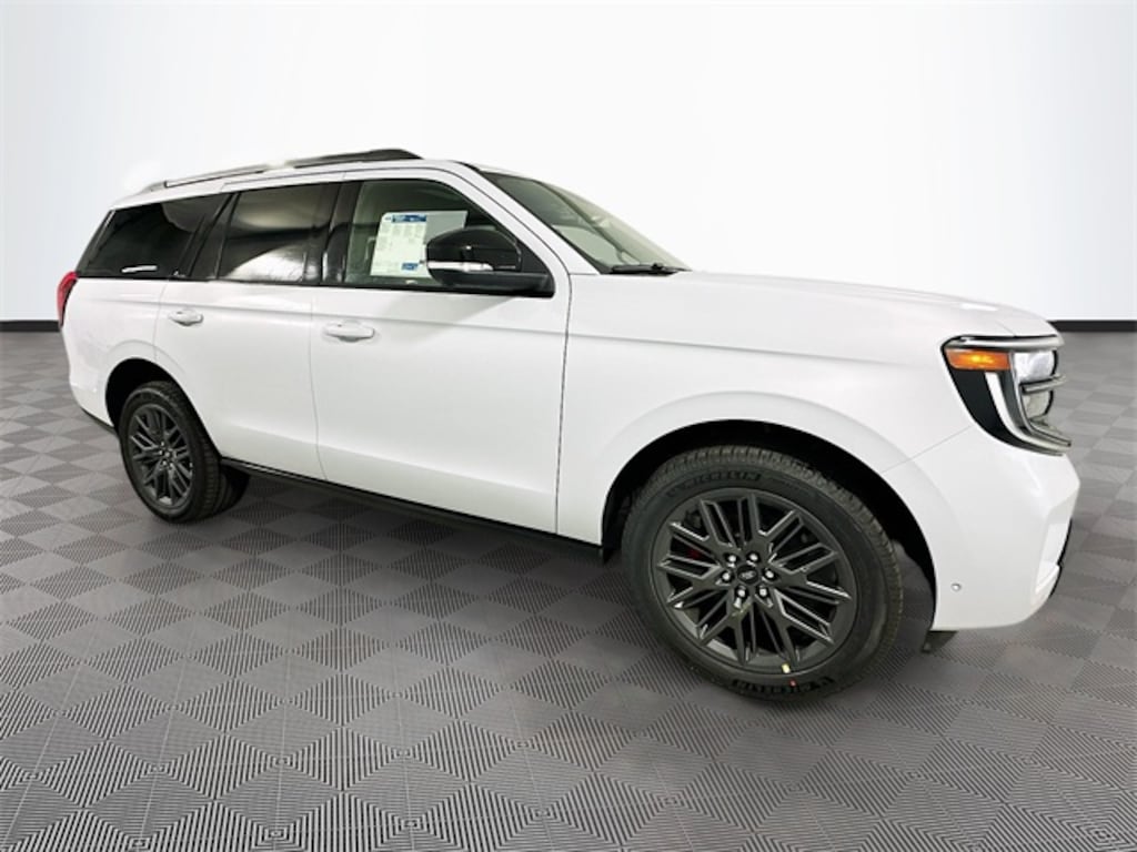 Silver Metallic 2025 Ford Expedition Platinum 4WD 3.5L V6 4D Sport Utility 10-Speed Automatic 4WD, 10 Speakers, 2nd Row Power-Folding Captain's Chairs, 3.73 Axle Ratio, 3rd Row All-Weather Floor Liner (Tray Style), 3rd row seats: split-bench, 4-Wheel Disc Brakes, ABS brakes, Adjustable pedals, Air Conditioning, Alloy wheels, AM/FM radio: SiriusXM with 360L, Apple CarPlay/Android Auto, Auto High-beam Headlights, Auto-dimming door mirrors, Auto-dimming Rear-View mirror, Automatic temperature control, Black Belt Molding, Black Expedition Lettering On Hood, Black Headlamp Bezel w/Ebony Trim Applique, Black Platinum Badge On Tailgate, Black Roof Rails, Black Roof-Rail Cross Bars, BlueCruise Equipped (One-Time Purchase), Brake assist, Bumpers: body-color, Carbon Black Front Bumper/Fascia, Compass, Connectivity Package (One-Time Purchase), Continuous Control Damping Suspension, Delay-off headlights, Driver door bin, Driver vanity mirror, Driver's Package, Dual front impact airbags, Dual front side impact airbags, Electronic Stability Control, Emergency communication system: 911 Assist, Engine Sound Enhancer, Equipment Group 600A Standard Package, Exterior Parking Camera Rear, Floor Liners, Front & Second Rows (Tray Style), Four wheel independent suspension, Front anti-roll bar, Front Bucket Seats, Front Center Armrest, Front dual zone A/C, Front reading lights, Fully automatic headlights, Garage door transmitter, Genuine wood dashboard insert, Genuine wood door panel insert, Heated & Ventilated Leather Front Captain's Chairs, Heated door mirrors, Heated front seats, Heated rear seats, Heated steering wheel, High Flow Exhaust System, Illuminated entry, Leather steering wheel, Load Floor Reversible Mat, Low tire pressure warning, Memory seat, Navigation System, Occupant sensing airbag, Outside temperature display, Overhead airbag, Overhead console, Panic alarm, Passenger door bin, Passenger vanity mirror, Pedal memory, Power door mirrors, Power driver seat, Power moonroof: Vista Roof, Power passenger seat, Power steering, Power windows, Radio data system, Radio: B&O Sound System by Bang & Olufsen, Radio: B&O Unleashed Sound System by Bang & Olufsen, Rain sensing wipers, Rear air conditioning, Rear anti-roll bar, Rear reading lights, Rear Side Windows Laminated Glass, Rear window defroster, Rear window wiper, Reclining 3rd row seat, Red Brake Calipers, Remote keyless entry, Security system, Signature Grille Lighting, SiriusXM w/360L, Speed control, Speed-sensing steering, Speed-Sensitive Wipers, Split folding rear seat, Spoiler, Stealth Appearance Package, Stealth Performance Package, Steering wheel memory, Steering wheel mounted audio controls, Tachometer, Telescoping steering wheel, Tilt steering wheel, Traction control, Trip computer, Turn signal indicator mirrors, Variably intermittent wipers, Ventilated front seats, Voltmeter, Wheels: 20" Ebony Bright Machined Aluminum, Wheels: 22" Magnetite Painted Aluminum, 4WD.