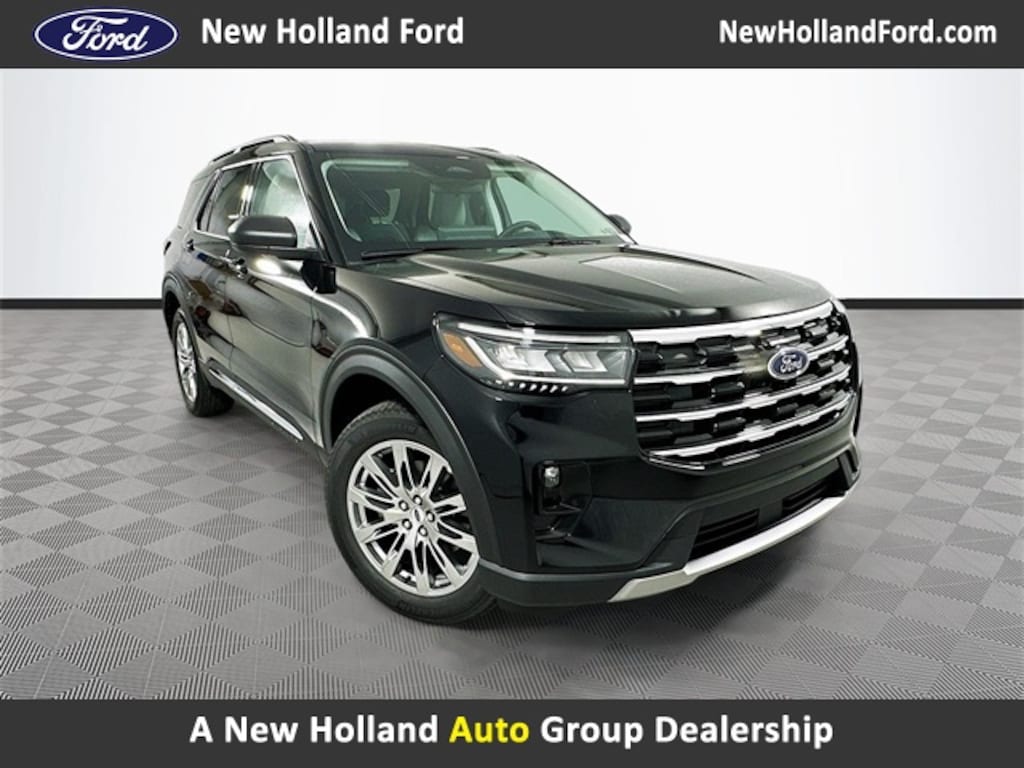 Black 2025 Ford Explorer Active 4WD 2.3L EcoBoost I-4 4D Sport Utility 10-Speed Automatic 4WD, 3.58 Non-Limited Slip Rear Axle, 3rd row seats: bench, 3rd Rw All-Wthr Flr Liners w/2nd Rw Cap Chairs, 4-Wheel Disc Brakes, 6 Speakers, ABS brakes, Active Comfort Package, Air Conditioning, Alloy wheels, AM/FM radio: SiriusXM with 360L, AM/FM Stereo, Apple CarPlay/Android Auto, Auto High-beam Headlights, Automatic temperature control, Brake assist, Bumpers: body-color, Compass, Delay-off headlights, Driver door bin, Driver vanity mirror, Dual front impact airbags, Dual front side impact airbags, Electronic Stability Control, Emergency communication system: 911 Assist, Equipment Group 200A Standard Package, Exterior Parking Camera Rear, Four wheel independent suspension, Front & 2nd Rows Floor Liners w/o Carpet Floor Mats, Front anti-roll bar, Front Bucket Seats, Front Center Armrest, Front dual zone A/C, Front Fascia, Front reading lights, Fully automatic headlights, Heated ActiveX Seating Material Captain's Chairs, Heated door mirrors, Heated front seats, Heated Steering Wheel, Illuminated entry, Knee airbag, Leather steering wheel, Low tire pressure warning, Navigation System, Occupant sensing airbag, Outside temperature display, Overhead airbag, Overhead console, Panic alarm, Panoramic Vista Roof w/Power Shade, Passenger door bin, Passenger vanity mirror, Power door mirrors, Power driver seat, Power Liftgate, Power passenger seat, Power steering, Power windows, Rear air conditioning, Rear anti-roll bar, Rear reading lights, Rear window defroster, Rear window wiper, Remote keyless entry, Remote Start System, Second Row HVAC Controls, SecuriCode Keyless Entry Keypad, Security system, Speed control, Speed-sensing steering, Speed-Sensitive Wipers, Split folding rear seat, Spoiler, Steering wheel mounted audio controls, Tachometer, Telescoping steering wheel, Tilt steering wheel, Traction control, Trip computer, Unique Heated Cloth Captain's Chairs, Universal Garage Door Opener (UGDO), Variably intermittent wipers, Wheels: 18" Sparkle Silver-Painted Aluminum, Wheels: 20" Luster Nickel-Painted Aluminum, 4WD.