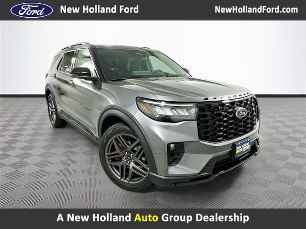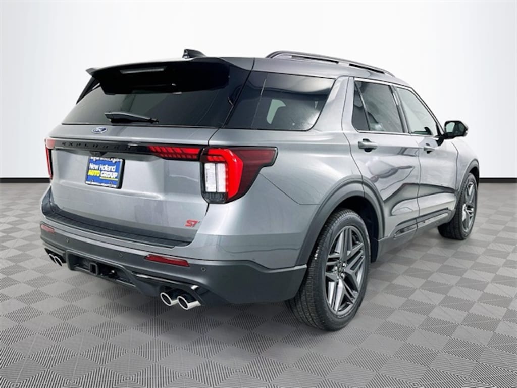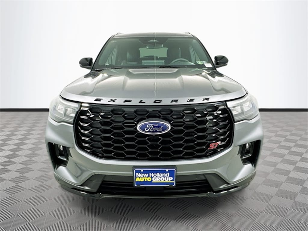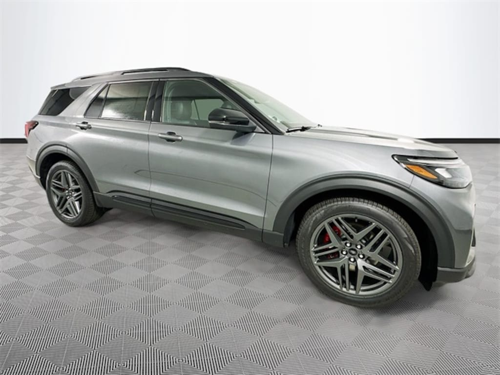 Gray Metallic 2025 Ford Explorer ST 4WD 3.0L EcoBoost V6 4D Sport Utility 10-Speed Automatic 4WD, 10 Speakers, 3.58 Non-Limited Slip Rear Axle, 3rd row seats: bench, 4-Wheel Disc Brakes, ABS brakes, Air Conditioning, Alloy wheels, AM/FM radio: SiriusXM with 360L, Apple CarPlay/Android Auto, Auto High-beam Headlights, Auto-dimming door mirrors, Auto-dimming Rear-View mirror, Automatic temperature control, B&O Sound System by Bang & Olufsen, Brake assist, Bumpers: body-color, Compass, Delay-off headlights, Driver door bin, Driver vanity mirror, Dual front impact airbags, Dual front side impact airbags, Electronic Stability Control, Emergency communication system: 911 Assist, Equipment Group 400A Standard Package, Exterior Parking Camera Rear, Four wheel independent suspension, Front anti-roll bar, Front Bucket Seats, Front Center Armrest, Front dual zone A/C, Front fog lights, Front License Plate Bracket, Front reading lights, Fully automatic headlights, Garage door transmitter, Heated door mirrors, Heated front seats, Heated rear seats, Heated steering wheel, Heated/Ventilated Miko Sport Captain's Chairs, Illuminated entry, Knee airbag, Leather steering wheel, Low tire pressure warning, Memory seat, Multicontour Seats w/Front Active Motion, Navigation System, Occupant sensing airbag, Outside temperature display, Overhead airbag, Overhead console, Panic alarm, Panoramic Vista Roof w/Power Shade, Passenger door bin, Passenger vanity mirror, Power door mirrors, Power driver seat, Power Liftgate, Power passenger seat, Power steering, Power windows, Radio: B&O Sound System by Bang & Olufsen, Rain sensing wipers, Rear air conditioning, Rear anti-roll bar, Rear reading lights, Rear window defroster, Rear window wiper, Remote keyless entry, Security system, Speed control, Speed-sensing steering, Speed-Sensitive Wipers, Split folding rear seat, Spoiler, Sport steering wheel, Steering wheel mounted audio controls, Sun and Sound Package, Tachometer, Telescoping steering wheel, Tilt steering wheel, Traction control, Trip computer, Turn signal indicator mirrors, Variably intermittent wipers, Ventilated front seats, Wheels: 21" Magnetite-Painted Aluminum, 4WD.
