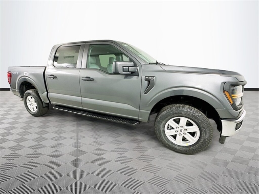 Gray 2025 Ford F-150 XL 4WD 2.7L V6 EcoBoost 4D SuperCrew 10-Speed Automatic 4WD, 4-Wheel Disc Brakes, 6 Speakers, ABS brakes, Air Conditioning, AM/FM radio: SiriusXM with 360L, Auto High-beam Headlights, Black Platform Running Boards, Brake assist, Chrome Bumpers, Cloth 40/20/40 Front Seat, Compass, Delay-off headlights, Driver door bin, Dual front impact airbags, Dual front side impact airbags, Electronic Stability Control, Emergency communication system: SYNC 4 911 Assist, Equipment Group 103A High, Front anti-roll bar, Front Center Armrest, Front License Plate Bracket, Front reading lights, Front wheel independent suspension, Fully automatic headlights, GVWR: 6,650 lbs Payload Package, Heated door mirrors, Illuminated entry, Integrated Trailer Brake Controller, Interior Work Surfaces, Internet access capable: FordPass Connect 5G, LED Fog Lamps, Low tire pressure warning, Occupant sensing airbag, Outside temperature display, Overhead airbag, Overhead console, Panic alarm, Passenger door bin, Passenger vanity mirror, Power door mirrors, Power steering, Power windows, Radio data system, Radio: AM/FM Stereo w/SiriusXM 360L, Rear Parking Sensors, Rear step bumper, Rear Window Fixed Privacy Glass w/Defroster, Remote keyless entry, Security system, Speed control, Split folding rear seat, Steering wheel mounted audio controls, SYNC 4 w/Enhanced Voice Recognition, Tachometer, Telescoping steering wheel, Tilt steering wheel, Traction control, Trip computer, Variably intermittent wipers, Vinyl 40/20/40 Front Seat, Voltmeter, Wheels: 17" Silver Painted Aluminum, Wheels: 17" Silver Steel, 4WD.