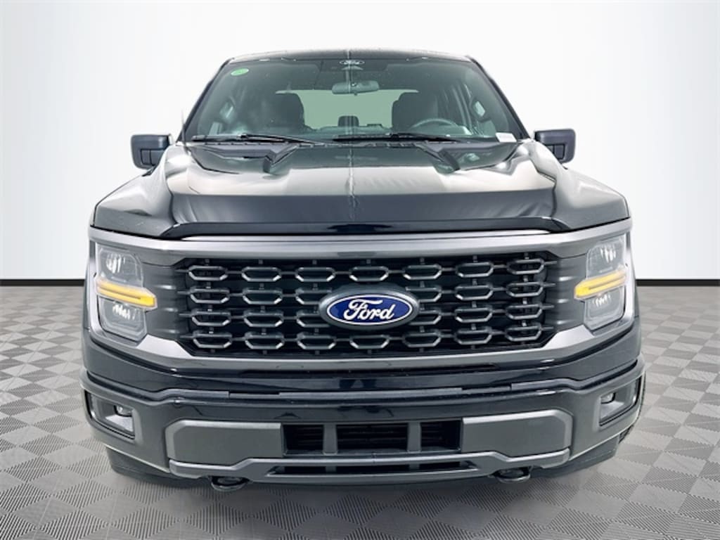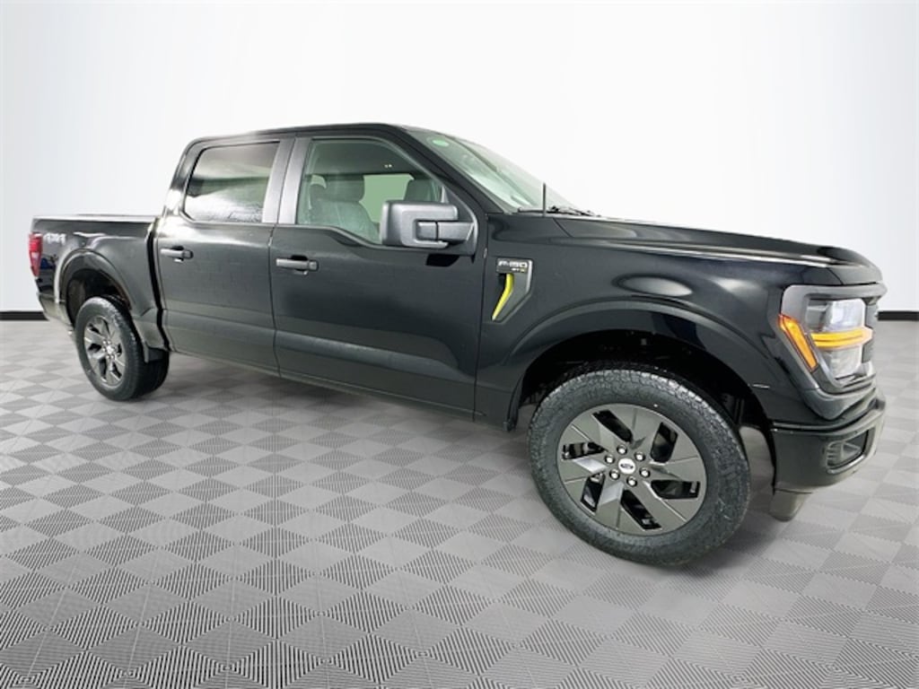 Black 2025 Ford F-150 STX 4WD 2.7L V6 EcoBoost 4D SuperCrew 10-Speed Automatic 4WD, 3.55 Axle Ratio, 4-Wheel Disc Brakes, 6 Speakers, ABS brakes, Air Conditioning, Alloy wheels, AM/FM radio: SiriusXM with 360L, Auto High-beam Headlights, Brake assist, Bumpers: body-color, Compass, Delay-off headlights, Driver door bin, Dual front impact airbags, Dual front side impact airbags, Electronic Stability Control, Emergency communication system: SYNC 4 911 Assist, Equipment Group 200A Mid, Front anti-roll bar, Front Bucket Seats, Front Center Armrest, Front reading lights, Front wheel independent suspension, Fully automatic headlights, GVWR: 6,650 lbs Payload Package, Heated door mirrors, Illuminated entry, LED Fog Lamps w/LED Cornering Lamp, Low tire pressure warning, Occupant sensing airbag, Outside temperature display, Overhead airbag, Overhead console, Panic alarm, Passenger door bin, Passenger vanity mirror, Power door mirrors, Power steering, Power windows, Radio data system, Radio: AM/FM Stereo w/SiriusXM 360L, Rear Parking Sensors, Rear step bumper, Rear window defroster, Remote keyless entry, Security system, Speed control, Split folding rear seat, Steering wheel mounted audio controls, SYNC 4 w/Enhanced Voice Recognition, Tachometer, Telescoping steering wheel, Tilt steering wheel, Traction control, Tray Style Floor Liner w/Carpet Mats, Trip computer, Variably intermittent wipers, Voltmeter, Wheels: 18" Gloss Black, Wheels: 20" Dark Gray w/Machined Aluminum, 4WD.