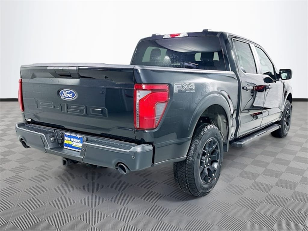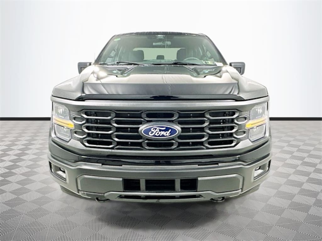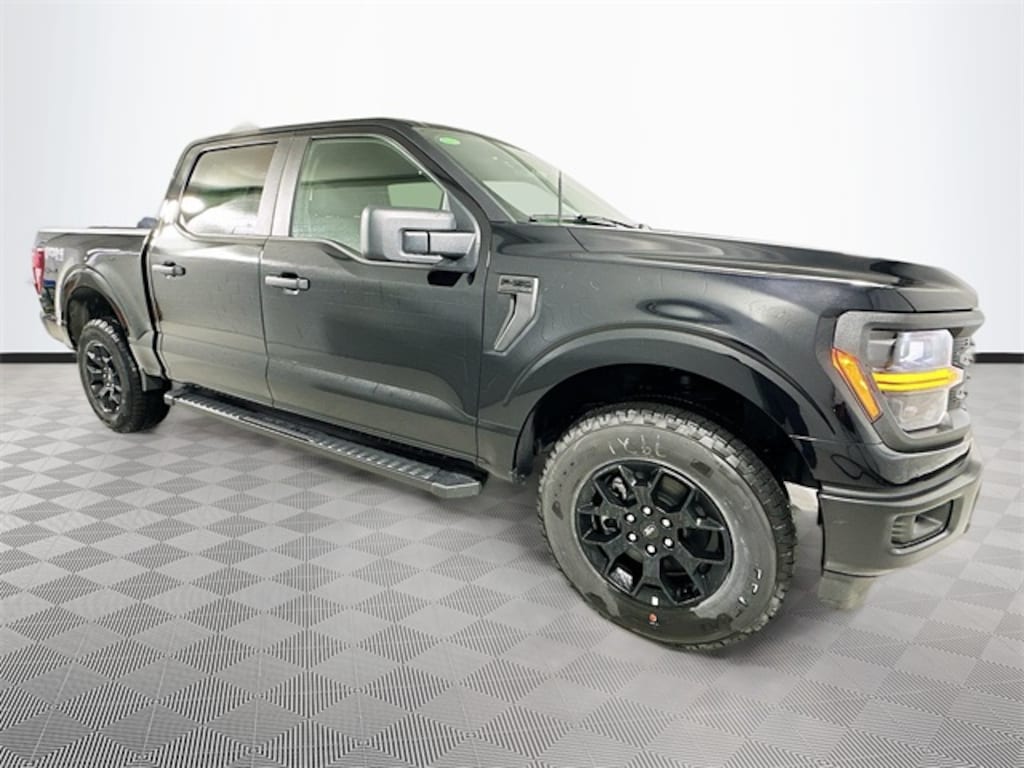 Black Metallic 2025 Ford F-150 STX 4WD 2.7L V6 EcoBoost 4D SuperCrew 10-Speed Automatic 4WD, 3.55 Axle Ratio, 4-Wheel Disc Brakes, 400W Cab & Bed Outlets, 6 Speakers, 6" Black Running Boards, ABS brakes, Air Conditioning, Alloy wheels, AM/FM radio: SiriusXM with 360L, Argent Front/Rear Bumper, Auto High-beam Headlights, Brake assist, Bumpers: body-color, Compass, Console Worksurface, Delay-off headlights, Driver door bin, Dual Exhaust w/Black Tips, Dual front impact airbags, Dual front side impact airbags, Electronic Stability Control, Emergency communication system: SYNC 4 911 Assist, Equipment Group 201A FX4, Front anti-roll bar, Front Bucket Seats, Front Center Armrest, Front reading lights, Front wheel independent suspension, Fully automatic headlights, FX4 Box Decal, GVWR: 6,650 lbs Payload Package, Heated door mirrors, Illuminated entry, Internet access capable: FordPass Connect 5G, LED Fog Lamps w/LED Cornering Lamp, Low tire pressure warning, Mobile Office Package, Monotube Rear Shocks, Occupant sensing airbag, Off-Road Tuned Front Shock Absorbers, Outside temperature display, Overhead airbag, Overhead console, Panic alarm, Passenger door bin, Passenger vanity mirror, Power door mirrors, Power steering, Power windows, Radio data system, Radio: AM/FM Stereo w/SiriusXM 360L, Rear Parking Sensors, Rear step bumper, Rear window defroster, Remote keyless entry, Security system, Speed control, Split folding rear seat, Steering wheel mounted audio controls, STX Badge in Fender Vent, SYNC 4 w/Enhanced Voice Recognition, Tachometer, Telescoping steering wheel, Tilt steering wheel, Traction control, Tray Style Floor Liner w/Carpet Mats, Trip computer, Unique Cloth 40/Console/40 Front Seats, Variably intermittent wipers, Voltmeter, Wheels: 18" Black Painted Aluminum, Wheels: 18" Gloss Black, 4WD.