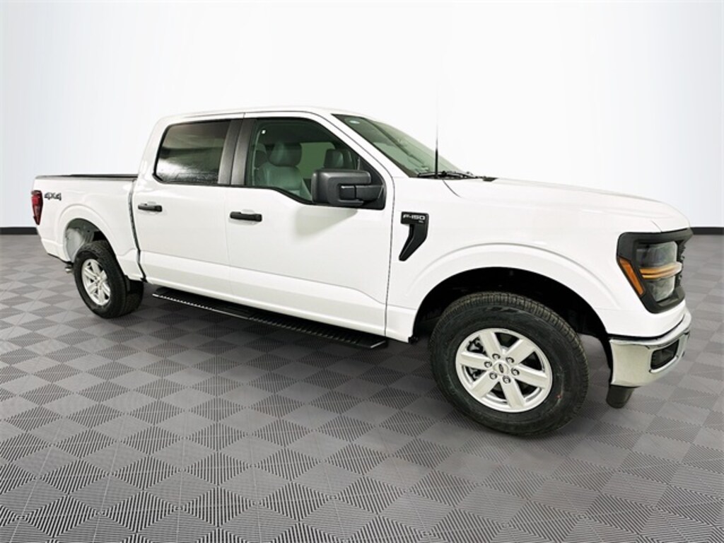Oxford White 2025 Ford F-150 XL 4WD 2.7L V6 EcoBoost 4D SuperCrew 10-Speed Automatic 4WD, 4-Wheel Disc Brakes, 6 Speakers, ABS brakes, Air Conditioning, AM/FM radio: SiriusXM with 360L, Auto High-beam Headlights, Black Platform Running Boards, Brake assist, Chrome Bumpers, Cloth 40/20/40 Front Seat, Compass, Delay-off headlights, Driver door bin, Dual front impact airbags, Dual front side impact airbags, Electronic Stability Control, Emergency communication system: SYNC 4 911 Assist, Equipment Group 103A High, Front anti-roll bar, Front Center Armrest, Front License Plate Bracket, Front reading lights, Front wheel independent suspension, Fully automatic headlights, GVWR: 6,650 lbs Payload Package, Heated door mirrors, Illuminated entry, Integrated Trailer Brake Controller, Interior Work Surfaces, Internet access capable: FordPass Connect 5G, LED Fog Lamps, Low tire pressure warning, Occupant sensing airbag, Outside temperature display, Overhead airbag, Overhead console, Panic alarm, Passenger door bin, Passenger vanity mirror, Power door mirrors, Power steering, Power windows, Radio data system, Radio: AM/FM Stereo w/SiriusXM 360L, Rear Parking Sensors, Rear step bumper, Rear Window Fixed Privacy Glass w/Defroster, Remote keyless entry, Security system, Speed control, Split folding rear seat, Steering wheel mounted audio controls, SYNC 4 w/Enhanced Voice Recognition, Tachometer, Telescoping steering wheel, Tilt steering wheel, Traction control, Trip computer, Variably intermittent wipers, Vinyl 40/20/40 Front Seat, Voltmeter, Wheels: 17" Silver Painted Aluminum, Wheels: 17" Silver Steel, 4WD.