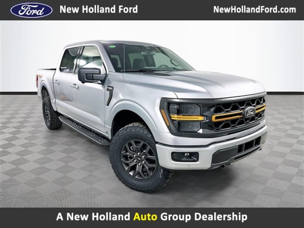Silver Metallic 2025 Ford F-150 Tremor 4WD 3.5L V6 EcoBoost 4D SuperCrew 10-Speed Automatic 4WD, 4 Pickup Box Tie-Down Plates, 4-Wheel Disc Brakes, 8 Speakers, ABS brakes, Adjustable pedals, Air Conditioning, Alloy wheels, AM/FM radio: SiriusXM with 360L, Auto High-beam Headlights, Auto-dimming door mirrors, Auto-dimming Rear-View mirror, Automatic temperature control, Bed Utility Package, Black Tailgate Decal, Brake assist, Bumpers: body-color, Compass, Delay-off headlights, Driver door bin, Driver vanity mirror, Dual front impact airbags, Dual front side impact airbags, Electronic Locking w/3.73 Axle Ratio, Electronic Stability Control, Emergency communication system: SYNC 4 911 Assist, Equipment Group 401A Standard, Front anti-roll bar, Front Bucket Seats, Front Center Armrest, Front dual zone A/C, Front fog lights, Front License Plate Bracket, Front reading lights, Front wheel independent suspension, Fully automatic headlights, GVWR: 7,100 lbs Payload Package, Heated door mirrors, Heated front seats, Illuminated entry, Integrated Trailer Brake Controller, Internet access capable: FordPass Connect 5G, LED Box Lighting, Low tire pressure warning, Navigation system: Connected Navigation, Occupant sensing airbag, Outside temperature display, Overhead airbag, Overhead console, Panic alarm, Passenger door bin, Passenger vanity mirror, Power door mirrors, Power driver seat, Power passenger seat, Power steering, Power Tailgate, Power windows, Radio data system, Radio: B&O Sound System by Bang & Olufsen, Rear reading lights, Rear step bumper, Rear window defroster, Remote keyless entry, Retractable Rear Center Step, SecuriCode Keyless-Entry Keypad, Security system, Speed control, Split folding rear seat, Steering wheel mounted audio controls, SYNC 4 w/Enhanced Voice Recognition, Tachometer, Tailgate Step w/Tailgate Work Surface, Telescoping steering wheel, Tilt steering wheel, Tow/Haul Package, Traction control, Tray Style Floor Liner w/Carpet Mats, Trip computer, Turn signal indicator mirrors, Unique Sport Cloth 40/Console/40 Power Front Seat, Variably intermittent wipers, Voltmeter, Wheels: 18" Alloy w/Dark Matte Finish, 4WD.