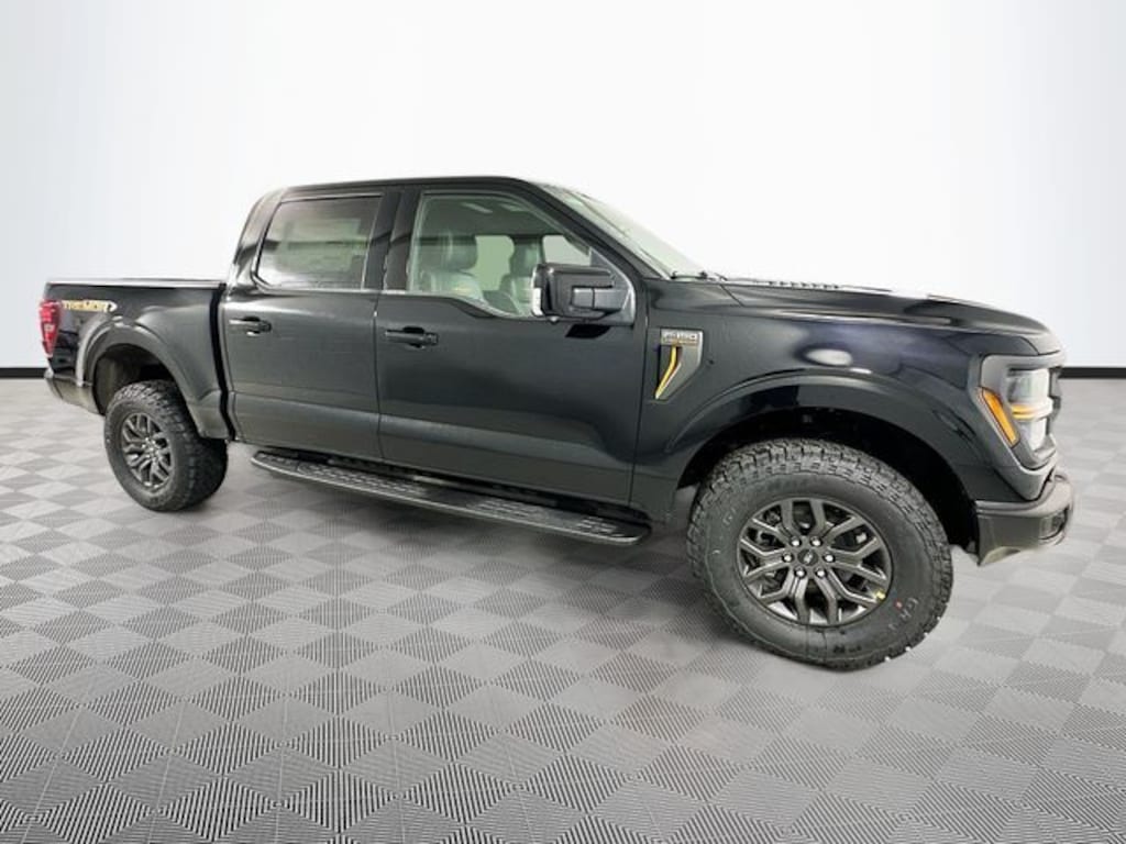 Black 2025 Ford F-150 Tremor 4WD 3.5L V6 EcoBoost 4D SuperCrew 10-Speed Automatic 4WD, 2nd Row Heated Seats, 4 Pickup Box Tie-Down Plates, Ambient Lighting, Auto-Dimming Rear-View Mirror, Bed Utility Package, Console Worksurface, Equipment Group 402A High, Front Axle w/Torsen Differential, Heads-Up Display, Heated Steering Wheel, Integrated Trailer Brake Controller, LED Box Lighting, LED Taillamps, Media Bin Door, Mobile Office Package, Modular Front Bumper & Carbon Black Rear Bumper, Partitioned Lockable Rear Storage, Power Glass Heated Sideview Mirrors, Power Tailgate, Power-Adjustable Pedals w/Memory, Premium Wrapped Steering Wheel, Radio: B&O Unleashed Sound System by Bang & Olufsen, Rain-Sensing Wipers, Tow/Haul Package, Two-Speed Automatic AWD w/Mechanical Locking 4WD, Unique Tremor Leather-Trimmed Bucket Seats, Universal Garage Door Opener, Wireless Charging, 4-Wheel Disc Brakes, 8 Speakers, ABS brakes, Adjustable pedals, Air Conditioning, Alloy wheels, AM/FM radio: SiriusXM with 360L, Auto High-beam Headlights, Auto-dimming door mirrors, Auto-dimming Rear-View mirror, Automatic temperature control, BlueCruise Equipped (1-Year Plan), Brake assist, Bumpers: body-color, Compass, Delay-off headlights, Driver door bin, Driver vanity mirror, Dual front impact airbags, Dual front side impact airbags, Electronic Locking w/3.73 Axle Ratio, Electronic Stability Control, Emergency communication system: SYNC 4 911 Assist, First Aid Kit w/Ford Logo, Front anti-roll bar, Front Bucket Seats, Front Center Armrest, Front dual zone A/C, Front fog lights, Front License Plate Bracket, Front reading lights, Front wheel independent suspension, Fully automatic headlights, GVWR: 7,100 lbs Payload Package, Heated door mirrors, Heated front seats, Illuminated entry, Internet access capable: FordPass Connect 5G, Low tire pressure warning, Navigation system: Connected Navigation, Occupant sensing airbag, Outside temperature display, Overhead airbag, Overhead console, Panic alarm, Passenger door bin, Passenger vanity mirror, Power door mirrors, Power driver seat, Power passenger seat, Power steering, Power windows, Radio data system, Radio: B&O Sound System by Bang & Olufsen, Rear reading lights, Rear step bumper, Rear window defroster, Remote keyless entry, SecuriCode Keyless-Entry Keypad, Security system, Speed control, Split folding rear seat, Steering wheel mounted audio controls, SYNC 4 w/Enhanced Voice Recognition, Tachometer, Tailgate Step w/Tailgate Work Surface, Telescoping steering wheel, Tilt steering wheel, Traction control, Tray Style Floor Liner w/Carpet Mats, Trip computer, Turn signal indicator mirrors, Twin Panel Moonroof, Unique Sport Cloth 40/Console/40 Power Front Seat, Variably intermittent wipers, Voltmeter, Wheels: 18" Alloy w/Dark Matte Finish, BEDLINER & TONNEAU COVER, 4WD, 2nd Row Heated Seats, 4 Pickup Box Tie-Down Plates, Ambient Lighting, Auto-Dimming Rear-View Mirror, Bed Utility Package, Console Worksurface, Equipment Group 402A High, Front Axle w/Torsen Differential, Heads-Up Display, Heated Steering Wheel, Integrated Trailer Brake Controller, LED Box Lighting, LED Taillamps, Media Bin Door, Mobile Office Package, Modular Front Bumper & Carbon Black Rear Bumper, Partitioned Lockable Rear Storage, Power Glass Heated Sideview Mirrors, Power Tailgate, Power-Adjustable Pedals w/Memory, Premium Wrapped Steering Wheel, Radio: B&O Unleashed Sound System by Bang & Olufsen, Rain-Sensing Wipers, Tow/Haul Package, Two-Speed Automatic AWD w/Mechanical Locking 4WD, Unique Tremor Leather-Trimmed Bucket Seats, Universal Garage Door Opener, Wireless Charging.
