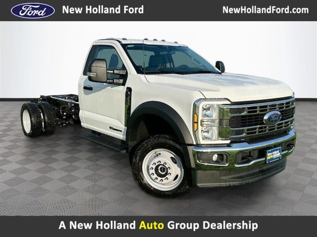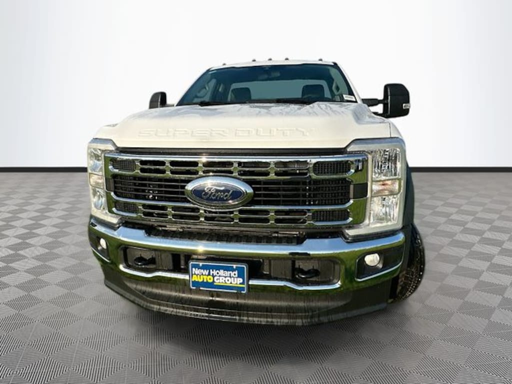 Oxford White 2025 Ford F-550SD XL DRW 4WD Power Stroke 6.7L V8 DI 32V OHV Turbodiesel 10-Speed Automatic 4WD, 120V/400W Outlet, 190 Amp Alternator, 350 Amp Dual Alternators, 4 Speakers, 4-Wheel Disc Brakes, 6-Ton Hydraulic Jack, ABS brakes, Air Conditioning, AM/FM radio, AM/FM Stereo w/MP3 Player, Brake assist, Compass, Delay-off headlights, Dual 68 AH/65 AGM Battery, Dual front impact airbags, Dual front side impact airbags, Dual rear wheels, Emergency communication system: SYNC 4 911 Assist, Engine Block Heater, Front anti-roll bar, Front Center Armrest w/Storage, Front License Plate Bracket, Front reading lights, Fully automatic headlights, GVWR: 18,000 lbs Payload Package, GVWR: 19,550 lb Payload Plus Upgrade Package 2, HD Vinyl 40/20/40 Split Bench Seat, Heated door mirrors, High Capacity Trailer Tow Package, Illuminated entry, Internet access capable: FordPass Connect 5G, Order Code 660A, Outside temperature display, Overhead airbag, Overhead console, Panic alarm, Passenger cancellable airbag, Passenger vanity mirror, Platform Running Boards, Power door mirrors, Power steering, Power windows, Rear anti-roll bar, Rear View Camera & Prep Kit, Remote keyless entry, Security system, Snow Plow Prep Package, Speed control, Steering wheel mounted audio controls, SYNC 4 Communication & Entertainment System, Tachometer, Telescoping steering wheel, Tilt steering wheel, Traction control, Trailer Brake Controller, Trip computer, Turn signal indicator mirrors, Variably intermittent wipers, Wheels: 19.5" x 6" Argent Painted Steel, XL Chrome Package, 4WD.