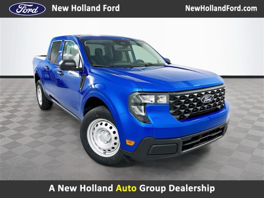 Blue 2025 Ford Maverick XL FWD 2.5L I-4 Hybrid 4D Crew Cab CVT 2.5L I-4 Hybrid, 2.91 Axle Ratio, 2K Trailer Hitch Receiver w/4-Pin Connector, 4-Wheel Disc Brakes, 6 Speakers, ABS brakes, Air Conditioning, AM/FM radio: SiriusXM with 360L, Apple CarPlay/Android Auto, Auto High Beams, Auto High-beam Headlights, Automatic temperature control, Bed Tie Down Locking Rails w/2 Locking Brackets, BLIS w/Cross-Traffic Alert, Brake assist, Bumpers: body-color, Compass, Cross Traffic Brake Assist, Delay-off headlights, Driver door bin, Driver vanity mirror, Dual front impact airbags, Dual front side impact airbags, Electronic Stability Control, Emergency communication system: SYNC 4 911 Assist, Equipment Group 100A, Evasive Steering Assist, Exterior Parking Camera Rear, Ford Co-Pilot360 1.0, Front & Rear Floor Liners w/o Carpet Mats, Front anti-roll bar, Front Bucket Seats, Front Center Armrest, Front Cloth Bucket Seats, Front reading lights, Front wheel independent suspension, Fully automatic headlights, Illuminated entry, Intersection Assist, Knee airbag, Lane-Keeping System, Low tire pressure warning, Occupant sensing airbag, Outside temperature display, Overhead airbag, Overhead console, Panic alarm, Passenger door bin, Passenger vanity mirror, Power Glass Manual-Folding Mirrors, Power steering, Power windows, Pre-Collision Assist w/Automatic Emergency Braking, Radio data system, Radio: AM/FM Stereo w/6 Speakers, Rear anti-roll bar, Rear Parking Sensors, Rear step bumper, Rear-View Camera, Remote keyless entry, SiriusXM w/360L, Speed control, Speed-sensing steering, Steering wheel mounted audio controls, SYNC 4 w/Enhanced Voice Recognition, Telescoping steering wheel, Tilt steering wheel, Traction control, Trip computer, Wheels: 17" Steel w/Sparkle Silver Painted Cover, 2.5L I-4 Hybrid.