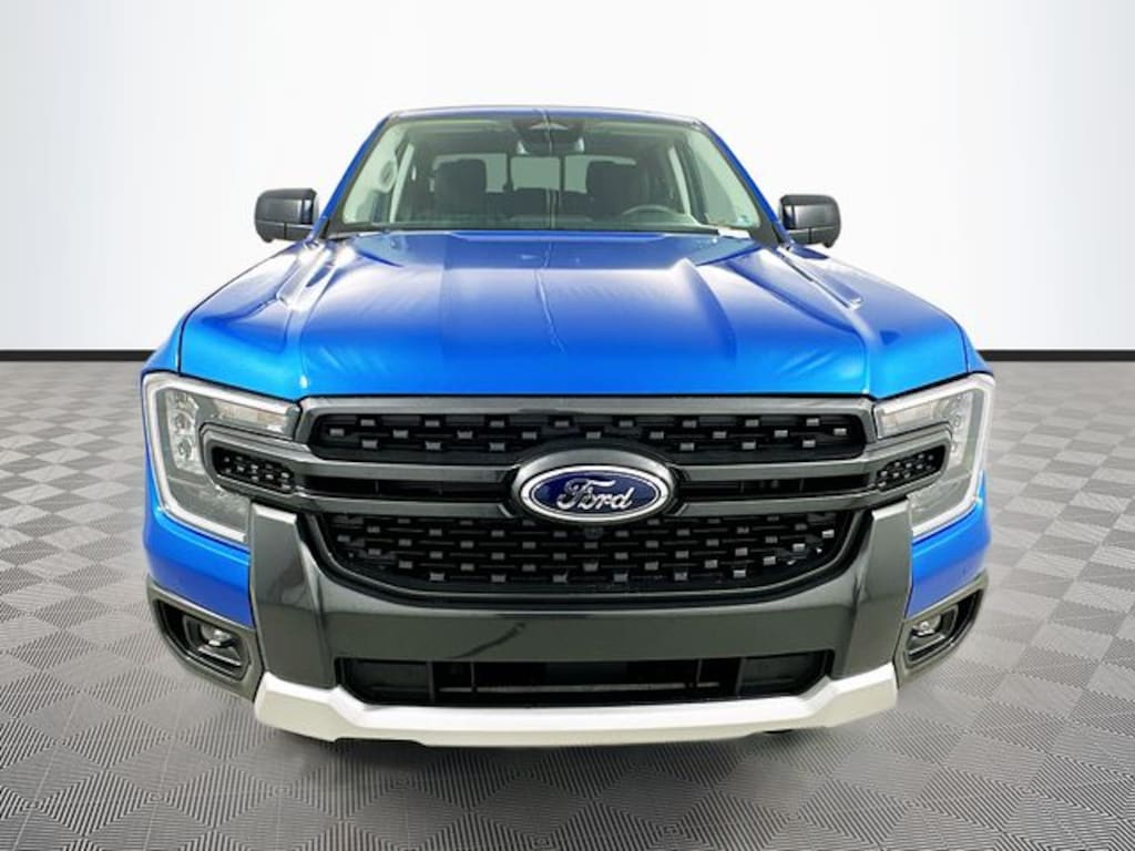 Blue Metallic 2025 Ford Ranger XLT 4WD EcoBoost 2.3L I4 GTDi DOHC Turbocharged VCT 4D Crew Cab 10-Speed Automatic 4WD, 12" Display in Center Stack, 120V/400W In-Cab & In-Bed Power Outlets, 360-Degree Camera, 4-Wheel Disc Brakes, 6 Speakers, ABS brakes, Adaptive Cruise Control, Air Conditioning, Alloy wheels, AM/FM radio: SiriusXM, AM/FM Stereo, Auto High-beam Headlights, Auto-dimming Rear-View mirror, Black Running Boards, Brake assist, Class IV Trailer Hitch Receiver, Cloth Front Bucket Seats, Compass, Convenience Package, Delay-off headlights, Driver door bin, Driver vanity mirror, Dual front impact airbags, Dual front side impact airbags, Dual-Zone Electronic Climate Control (DEATC), Electronic Stability Control, Emergency communication system: SYNC 4 911 Assist, Equipment Group 301A High, Front anti-roll bar, Front Bucket Seats, Front Center Armrest, Front fog lights, Front Parking Sensors, Front reading lights, Front wheel independent suspension, Fully automatic headlights, FX4 Off-Road Box Decal, FX4 Off-Road Package, FX4 Selectable Drive Modes, Gray Painted Center Bar & Grille Surround, Gray Painted Front Fascia & Rear Bumper, Illuminated entry, Integrated Box Side Step, Internet access capable: FordPass Connect 4G, Leather Shift Knob, Low tire pressure warning, Navigation system: Connected Navigation, Occupant sensing airbag, Off-Road Screen in Center Stack, Off-Road Tuned Shocks, Outside temperature display, Overhead airbag, Overhead console, Panic alarm, Passenger door bin, Passenger vanity mirror, Power door mirrors, Power steering, Power windows, Power-Sliding Rear Window, Rear reading lights, Rear seat center armrest, Rear step bumper, Rear window defroster, Remote keyless entry, Security system, SiriusXM Satellite Radio, Speed control, Speed-sensing steering, Sport Appearance Package, Sport Box Decal, Steering wheel mounted audio controls, SYNC 4A w/Connected Navigation, Technology Package, Telescoping steering wheel, Tilt steering wheel, Traction control, Trail Control, Trailer Tow Package, Tray Style Floor Liner, Trip computer, Variably intermittent wipers, Voltmeter, Wheels: 17" Gray-Painted Aluminum, Wireless Charging Pad, 4WD.