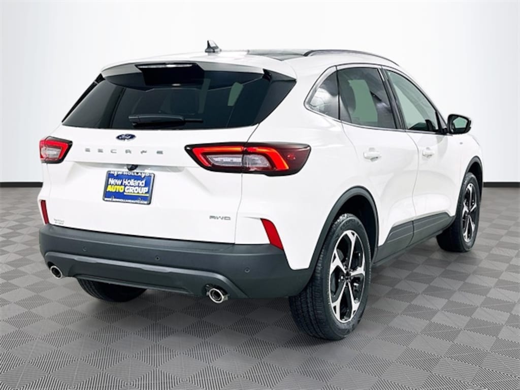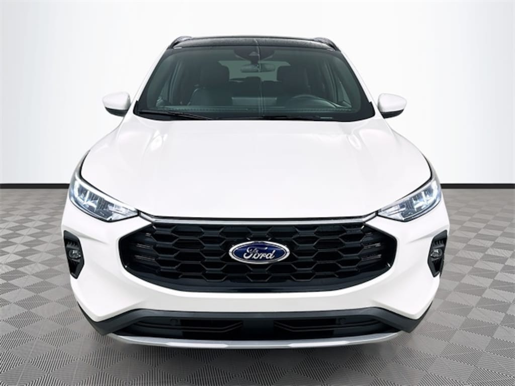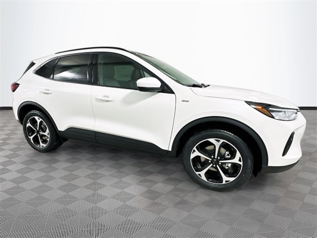 White 2026 Ford Escape ST-Line Select AWD EcoBoost 2.0L I4 GTDi DOHC Turbocharged VCT 4D Sport Utility 8-Speed Automatic AWD, 10-Way Power Driver's Seat w/Memory, 4-Way Manual Front Passenger Seat, 4-Wheel Disc Brakes, 6 Speakers, 8-Way Power Driver Seat, ABS brakes, Adaptive Cruise Control with Stop-and-Go, Air Conditioning, Alloy wheels, AM/FM radio: SiriusXM 360L, Auto High-beam Headlights, Automatic temperature control, Black Roof-Rack Side Rails, Brake assist, Bumpers: body-color, Cargo Mat, Compass, Connected Navigation (1-Year Included), Delay-off headlights, Digital Rear View Camera, Driver door bin, Driver vanity mirror, Dual front impact airbags, Dual front side impact airbags, Electronic Fuel Door Release, Electronic Stability Control, Emergency communication system: SYNC 4 911 Assist, Equipment Group 401A, Evasive Steering Assist, Ford App, Ford Co-Pilot360 Assist+, Four wheel independent suspension, Front and Rear Floor Liners with Carpet Mats, Front anti-roll bar, Front Bucket Seats, Front Center Armrest, Front dual zone A/C, Front fog lights, Front reading lights, Fully automatic headlights, Heated door mirrors, Heated front seats, Heated steering wheel, Illuminated entry, Intersection Assist, Knee airbag, Low tire pressure warning, Memory seat, Neutral Towing Capability, Occupant sensing airbag, Outside temperature display, Overhead airbag, Overhead console, Panic alarm, Panoramic Vista Roof, Partial Vinyl/Cloth Heated Front Sport Contour Bucket Seats with Red Stitching, Passenger door bin, Passenger vanity mirror, Pedestrian Alert Sounder, Power door mirrors, Power driver seat, Power Liftgate, Power steering, Power windows, Predictive Speed Assist, Radio data system, Radio: AM/FM Stereo with SiriusXM 360L, Rear anti-roll bar, Rear Parking Sensor, Rear reading lights, Rear seat center armrest, Rear window defroster, Rear window wiper, Remote keyless entry, Speed control, Speed-sensing steering, Speed-Sensitive Wipers, Split folding rear seat, Spoiler, Sport steering wheel, Steering wheel mounted audio controls, SYNC 4, SYNC 4 with Enhanced Voice Recognition, Tachometer, Tech Pack #1, Telescoping steering wheel, Tilt steering wheel, Traction control, Trip computer, Variably intermittent wipers, Wheels: 18" Rock Metallic Painted Aluminum, Wheels: 19" Machined-Face Ebony-Painted Aluminum, AWD.
