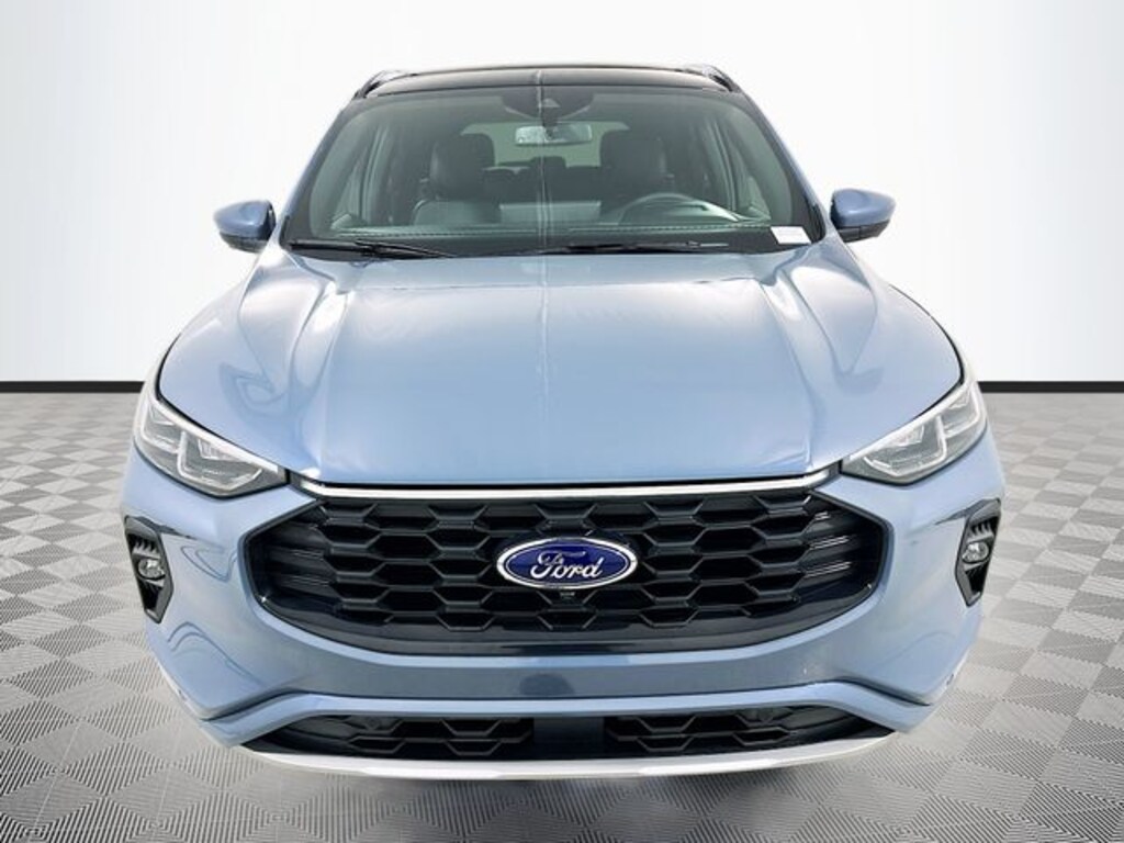Vapor Blue Metallic 2026 Ford Escape ST-Line Elite AWD EcoBoost 2.0L I4 GTDi DOHC Turbocharged VCT 4D Sport Utility 8-Speed Automatic AWD, 10-Way Power Driver's Seat w/Memory, 3.47 Axle Ratio, 360-Degree Camera with Split View, 6-Way Power Front Passenger Seat, ActiveX Trimmed Heated Front Sport Contour Bucket Seats with Quilting Design, B&O Sound System by Bang & Olufsen, Connected Navigation (1-Year Included), Equipment Group 501A, Ford App, Front Parking Sensors, HD Radio, Head-Up Display, Partial Vinyl/Cloth Heated Front Sport Contour Bucket Seats with Red Stitching, Premium Technology Package, Radio: AM/FM Stereo with SiriusXM 360L, Reverse Brake Assist, SYNC 4 with Enhanced Voice Recognition, Wheels: 19" Machined-Face Ebony-Painted Aluminum, 4-Wheel Disc Brakes, 6 Speakers, ABS brakes, Air Conditioning, Alloy wheels, AM/FM radio: SiriusXM 360L, Auto High-beam Headlights, Auto-dimming Rear-View mirror, Automatic temperature control, Black Roof-Rack Side Rails, Brake assist, Bumpers: body-color, Cargo Mat, Compass, Delay-off headlights, Driver door bin, Driver vanity mirror, Dual front impact airbags, Dual front side impact airbags, Electronic Fuel Door Release, Electronic Stability Control, Emergency communication system: SYNC 4 911 Assist, Four wheel independent suspension, Front and Rear Floor Liners with Carpet Mats, Front anti-roll bar, Front Bucket Seats, Front Center Armrest, Front dual zone A/C, Front fog lights, Front reading lights, Fully automatic headlights, Heated door mirrors, Heated front seats, Heated steering wheel, Illuminated entry, Knee airbag, Low tire pressure warning, Memory seat, Navigation system: Connected Navigation, Neutral Towing Capability, Occupant sensing airbag, Outside temperature display, Overhead airbag, Overhead console, Panic alarm, Panoramic Vista Roof, Passenger door bin, Passenger vanity mirror, Pedestrian Alert Sounder, Power door mirrors, Power driver seat, Power Liftgate, Power passenger seat, Power steering, Power windows, Radio data system, Rear anti-roll bar, Rear Parking Sensors, Rear reading lights, Rear seat center armrest, Rear window defroster, Rear window wiper, Remote keyless entry, SecuriCode Illuminated Door Entry Keypad, Security system, Speed control, Speed-sensing steering, Speed-Sensitive Wipers, Split folding rear seat, Spoiler, Sport steering wheel, Steering wheel mounted audio controls, Tachometer, Telescoping steering wheel, Tilt steering wheel, Traction control, Trip computer, Variably intermittent wipers, AWD, 10-Way Power Driver's Seat w/Memory, 3.47 Axle Ratio, 360-Degree Camera with Split View, 6-Way Power Front Passenger Seat, ActiveX Trimmed Heated Front Sport Contour Bucket Seats with Quilting Design, B&O Sound System by Bang & Olufsen, Connected Navigation (1-Year Included), Equipment Group 501A, Ford App, Front Parking Sensors, HD Radio, Head-Up Display, Partial Vinyl/Cloth Heated Front Sport Contour Bucket Seats with Red Stitching, Premium Technology Package, Radio: AM/FM Stereo with SiriusXM 360L, Reverse Brake Assist, SYNC 4 with Enhanced Voice Recognition, Wheels: 19" Machined-Face Ebony-Painted Aluminum.