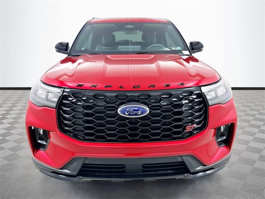 Rapid Red Metallic Tinted Clearcoat 2026 Ford Explorer ST 4WD 3.0L EcoBoost V6 4D Sport Utility 10-Speed Automatic 4WD, Equipment Group 400A Standard Package, Heated/Ventilated Miko Suede Captain's Chairs, Multicontour Seats with Front Active Motion, Panoramic Fixed Glass Roof with Power Shade, Radio: B&O Sound System by Bang & Olufsen, Radio: B&O Sound System by Bang and Olufsen, Remote Control Front Windows, Sun and Sound Package, Wheels: 21" Magnetite-Painted Aluminum, 10 Speakers, 3rd row seats: bench, 4-Wheel Disc Brakes, ABS brakes, Air Conditioning, Alloy wheels, AM/FM radio: SiriusXM with 360L, Apple CarPlay/Android Auto, Auto High-beam Headlights, Auto-dimming door mirrors, Auto-dimming Rear-View mirror, Automatic temperature control, Brake assist, Bumpers: body-color, Compass, Delay-off headlights, Driver door bin, Driver vanity mirror, Dual front impact airbags, Dual front side impact airbags, Electronic Stability Control, Emergency communication system: 911 Assist, Exterior Parking Camera Rear, Ford Connectivity Package (one-Time Purchase - 7 Years), Four wheel independent suspension, Front and 2nd Rows Floor Liners with Carper Floor Mats, Front anti-roll bar, Front Bucket Seats, Front Center Armrest, Front dual zone A/C, Front fog lights, Front reading lights, Fully automatic headlights, Garage door transmitter, Heated door mirrors, Heated front seats, Heated rear seats, Heated steering wheel, Illuminated entry, Knee airbag, Leather steering wheel, Low tire pressure warning, Memory seat, Navigation System, Occupant sensing airbag, Outside temperature display, Overhead airbag, Overhead console, Panic alarm, Passenger door bin, Passenger vanity mirror, Power door mirrors, Power driver seat, Power Liftgate, Power passenger seat, Power steering, Power windows, Rain sensing wipers, Rear air conditioning, Rear anti-roll bar, Rear reading lights, Rear window defroster, Rear window wiper, Remote keyless entry, SecuriCode Keyless Entry Keypad, Security system, SiriusXM with 360L (3-Year Plan), Speed control, Speed-sensing steering, Speed-Sensitive Wipers, Split folding rear seat, Spoiler, Sport steering wheel, Steering wheel mounted audio controls, Tachometer, Telescoping steering wheel, Tilt steering wheel, Traction control, Trip computer, Turn signal indicator mirrors, Variably intermittent wipers, Ventilated front seats, 4WD, Equipment Group 400A Standard Package, Heated/Ventilated Miko Suede Captain's Chairs, Multicontour Seats with Front Active Motion, Panoramic Fixed Glass Roof with Power Shade, Radio: B&O Sound System by Bang & Olufsen, Radio: B&O Sound System by Bang and Olufsen, Remote Control Front Windows, Sun and Sound Package, Wheels: 21" Magnetite-Painted Aluminum.