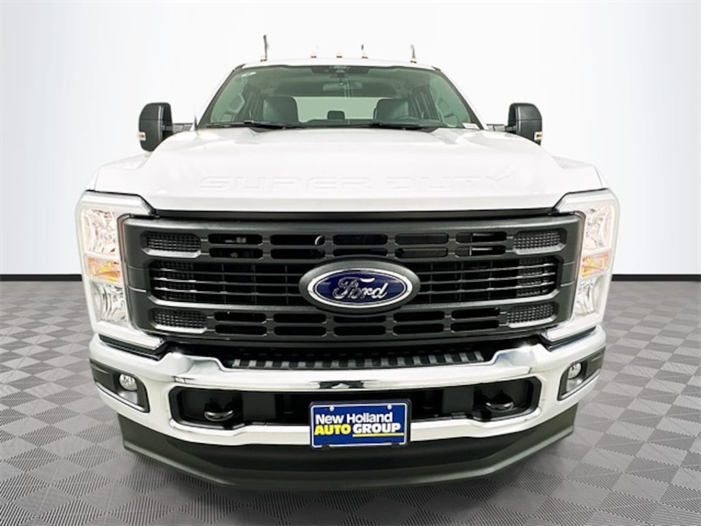 Oxford White 2026 Ford F-250SD XL 4WD 6.8L V8 4D Extended Cab 10-Speed Automatic 4WD, 17" Argent Painted Steel Wheels, 250 Amp Alternator (Gas), 4-Wheel Disc Brakes, 400W Pro Power Onboard, 6 Speakers, ABS brakes, Air Conditioning, AM/FM radio, AM/FM Stereo w/MP3 Player, Brake assist, Bright Chrome Hub Covers & Center Ornaments, Chrome Front Bumper, Chrome Rear Step Bumper, Compass, Delay-off headlights, Dual front impact airbags, Dual front side impact airbags, Electronic Stability Control, Emergency communication system: SYNC 4 911 Assist, Exterior Parking Camera Rear, Ford Connectivity Package (1-Year Included), Front anti-roll bar, Front Center Armrest w/Storage, Front License Plate Bracket, Front reading lights, Fully automatic headlights, GVWR: 10,000 lb Payload Package, Halogen Fog Lamps, HD Vinyl 40/20/40 Split Bench Seat, Heated door mirrors, Illuminated entry, Internet access capable: 5G Modem - Ford Connectivity Package, LED Roof Clearance Lights, Low tire pressure warning, Order Code 600A, Outside temperature display, Overhead airbag, Overhead console, Panic alarm, Passenger cancellable airbag, Passenger vanity mirror, Platform Running Boards, Power door mirrors, Power steering, Power windows, Rear step bumper, Remote keyless entry, Remote Start System, Security system, Snow Plow Prep Package, Speed control, Split folding rear seat, Steering wheel mounted audio controls, SYNC 4, Tachometer, Telescoping steering wheel, Tilt steering wheel, Traction control, Trailer Brake Controller, Trip computer, Turn signal indicator mirrors, Upfitter Switches (6), Variably intermittent wipers, XL Chrome Package, 4WD.