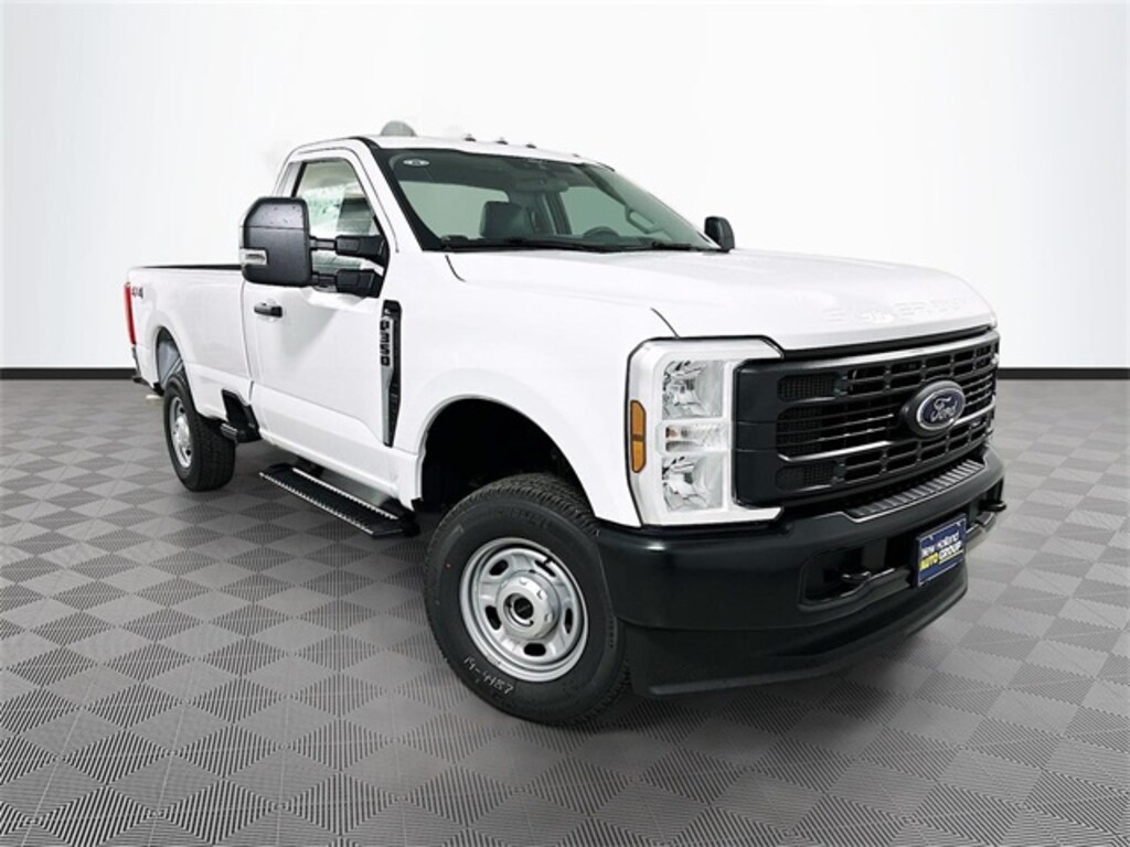 Oxford White 2026 Ford F-350SD XL 4WD 6.8L V8 2D Standard Cab Automatic 4WD, 190 Amp Alternator, 4 Speakers, 4-Wheel Disc Brakes, 410 Amp Dual Alternators, ABS brakes, Air Conditioning, AM/FM radio, AM/FM Stereo w/MP3 Player, Brake assist, Cloth 40/20/40 Split Bench Seat, Compass, Delay-off headlights, Dual AGM 68 AH Battery, Dual front impact airbags, Dual front side impact airbags, Electronic Stability Control, Emergency communication system: SYNC 4 911 Assist, Exterior Parking Camera Rear, Ford Connectivity Package (1-Year Included), Front anti-roll bar, Front Center Armrest w/Storage, Front License Plate Bracket, Front reading lights, Fully automatic headlights, GVWR: 10,900 lb Payload Package, Heated door mirrors, Illuminated entry, Internet access capable: 5G Modem - Ford Connectivity Package, LED Roof Clearance Lights, Low tire pressure warning, Outside temperature display, Overhead airbag, Overhead console, Panic alarm, Passenger cancellable airbag, Passenger vanity mirror, Platform Running Boards, Power door mirrors, Power steering, Power windows, Rear step bumper, Remote keyless entry, Security system, Snow Plow Prep Package, Speed control, Steering wheel mounted audio controls, SYNC 4, Tachometer, Telescoping steering wheel, Tilt steering wheel, Traction control, Trip computer, Turn signal indicator mirrors, Upfitter Switches (6), Variably intermittent wipers, 4WD.