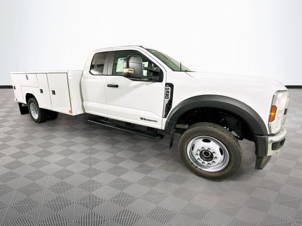 Oxford White 2026 Ford F-450SD XL DRW 4WD Power Stroke 6.7L V8 DI 32V OHV Turbodiesel Super Cab 10-Speed Automatic 4WD, 350 Amp Dual Alternators, 4-Wheel Disc Brakes, 6 Speakers, 6-Ton Hydraulic Jack, ABS brakes, Air Conditioning, AM/FM radio, Brake assist, Center High-Mounted Stop Lamp (CHMSL), Cloth 40/20/40 Split Bench Seat, Compass, Delay-off headlights, Dual front impact airbags, Dual front side impact airbags, Dual rear wheels, Emergency communication system: SYNC 4 911 Assist, Engine Block Heater, Ford Connectivity Package (1-Year Included), Front anti-roll bar, Front Center Armrest w/Storage, Front License Plate Bracket, Front reading lights, Fully automatic headlights, GVWR: 16,500 Lb Payload Package, Heated door mirrors, High Capacity Trailer Tow Package, Illuminated entry, Internet access capable: 5G Modem - Ford Connectivity Package, Low tire pressure warning, Outside temperature display, Overhead airbag, Overhead console, Panic alarm, Passenger cancellable airbag, Passenger vanity mirror, Platform Running Boards, Power door mirrors, Power steering, Power windows, Radio: AM/FM Stereo with MP3 Player, Rear anti-roll bar, Rear View Camera and Prep Kit, Remote keyless entry, Security system, Snow Plow Prep Package, Speed control, Split folding rear seat, Steering wheel mounted audio controls, SYNC 4, Tachometer, Telescoping steering wheel, Tilt steering wheel, Traction control, Trip computer, Turn signal indicator mirrors, Variably intermittent wipers, Wheels: 19.5" x 6" Argent Painted Steel, 11' READING CLASSIC II SERVICE BODY, LATCHMATIC KEYLESS ENTRY, LED COMPARTMENT LIGHTS, BACKUP CAMERA, 4WD.