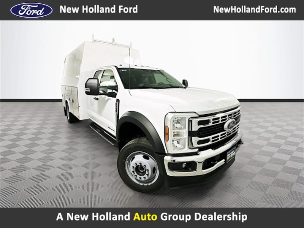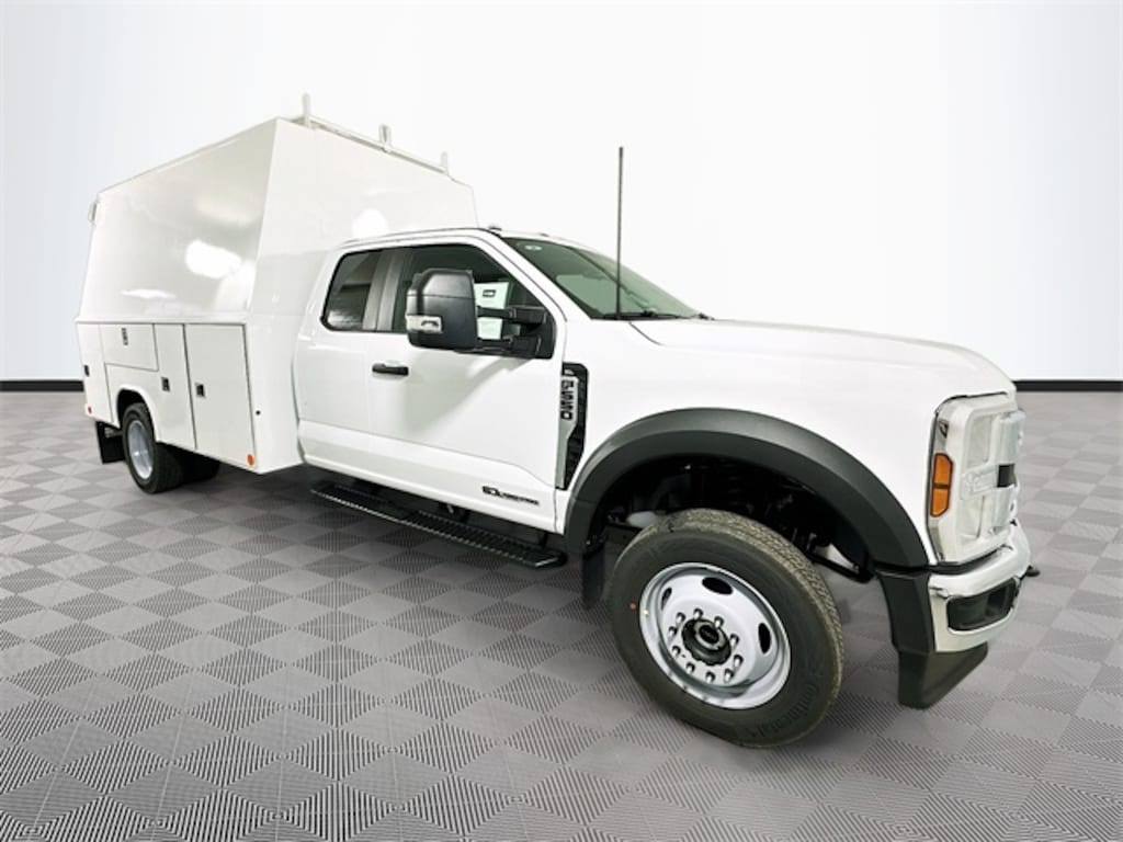 Oxford White 2026 Ford F-550SD XL DRW 4WD Power Stroke 6.7L V8 DI 32V OHV Turbodiesel Super Cab 10-Speed Automatic 4WD, 190 Amp Alternator, 350 Amp Dual Alternators, 4-Wheel Disc Brakes, 6 Speakers, 6-Ton Hydraulic Jack, ABS brakes, Air Conditioning, AM/FM radio, AM/FM Stereo w/MP3 Player, Brake assist, Bright Grille, Chrome Front Bumper, Compass, Delay-off headlights, Dual 68 AH/65 AGM Battery, Dual front impact airbags, Dual front side impact airbags, Dual rear wheels, Emergency communication system: SYNC 4 911 Assist, Engine Block Heater, Ford Connectivity Package (1-Year Included), Front anti-roll bar, Front Center Armrest w/Storage, Front License Plate Bracket, Front reading lights, Fully automatic headlights, GVWR: 18,000 lbs Payload Package, GVWR: 19,550 lb Payload Plus Upgrade Package 2, Halogen Fog Lamps, HD Vinyl 40/20/40 Split Bench Seat, Heated door mirrors, High Capacity Trailer Tow Package, Illuminated entry, Internet access capable: 5G Modem - Ford Connectivity Package, Low tire pressure warning, Order Code 660A, Outside temperature display, Overhead airbag, Overhead console, Panic alarm, Passenger cancellable airbag, Passenger vanity mirror, Platform Running Boards, Power door mirrors, Power steering, Power windows, Privacy Glass w/Power Sliding Rear Glass, Pro Power Onboard - 400W Outlet, Rear anti-roll bar, Rear View Camera & Prep Kit, Rear Window Defroster, Remote keyless entry, Remote Start, Security system, Snow Plow Prep Package, Speed control, Split folding rear seat, Steering wheel mounted audio controls, SYNC 4 Communication & Entertainment System, Tachometer, Telescoping steering wheel, Tilt steering wheel, Traction control, Trailer Brake Controller, Trip computer, Turn signal indicator mirrors, Variably intermittent wipers, Wheels: 19.5" x 6" Argent Painted Steel, XL Chrome Package, READING 11' CLASSIC II ENCLOSED SERVICE BODY, LATCHMATIC KEYLESS ENTRY, 3 BAR LADDER RACK, CLASS V RECEIVER, LED LIGHTING, 4WD.