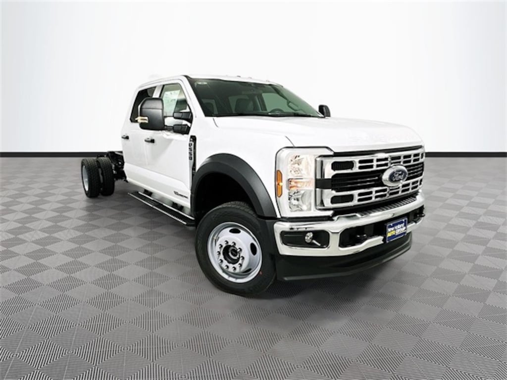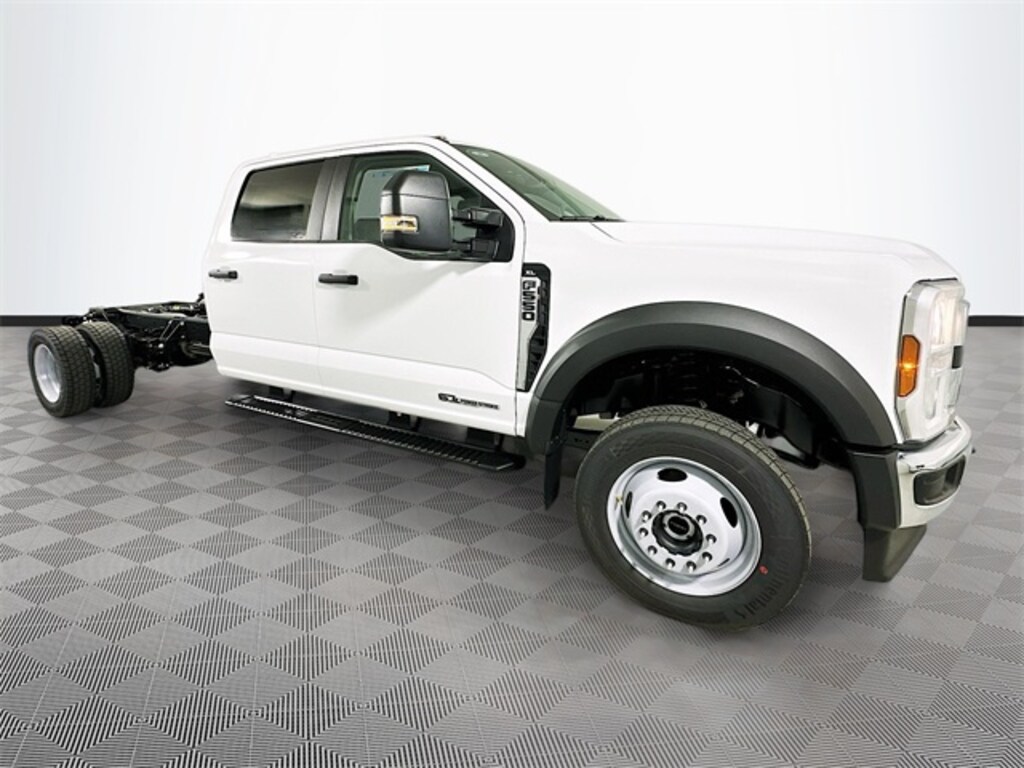 Oxford White 2026 Ford F-550SD XL DRW 4WD Power Stroke 6.7L V8 DI 32V OHV Turbodiesel 4D Crew Cab 10-Speed Automatic 4WD, 190 Amp Alternator, 350 Amp Dual Alternators, 4-Wheel Disc Brakes, 6 Speakers, 6-Ton Hydraulic Jack, ABS brakes, Air Conditioning, AM/FM radio, Brake assist, Bright Grille, Chrome Front Bumper, Compass, Delay-off headlights, Dual 68 AH/65 AGM Battery, Dual front impact airbags, Dual front side impact airbags, Dual rear wheels, Emergency communication system: SYNC 4 911 Assist, Engine Block Heater, Ford Connectivity Package (1-Year Included), Front anti-roll bar, Front Center Armrest w/Storage, Front License Plate Bracket, Front reading lights, Fully automatic headlights, GVWR: 18,000 lbs Payload Package, GVWR: 19,550 lb Payload Plus Upgrade Package 2, Halogen Fog Lamps, HD Vinyl 40/20/40 Split Bench Seat, Heated door mirrors, High Capacity Trailer Tow Package, Illuminated entry, Internet access capable: 5G Modem - Ford Connectivity Package, Low tire pressure warning, Order Code 660A, Outside temperature display, Overhead airbag, Overhead console, Panic alarm, Passenger vanity mirror, Platform Running Boards, Power door mirrors, Power steering, Power windows, Privacy Glass w/Power Sliding Rear Glass, Pro Power Onboard - 400W Outlet, Rear anti-roll bar, Rear reading lights, Rear View Camera & Prep Kit, Rear Window Defroster, Remote keyless entry, Remote Start, Security system, Snow Plow Prep Package, Speed control, Split folding rear seat, Steering wheel mounted audio controls, SYNC 4 Communication & Entertainment System, Tachometer, Telescoping steering wheel, Tilt steering wheel, Traction control, Trailer Brake Controller, Trip computer, Turn signal indicator mirrors, Variably intermittent wipers, Wheels: 19.5" x 6" Argent Painted Steel, XL Chrome Package, 4WD.