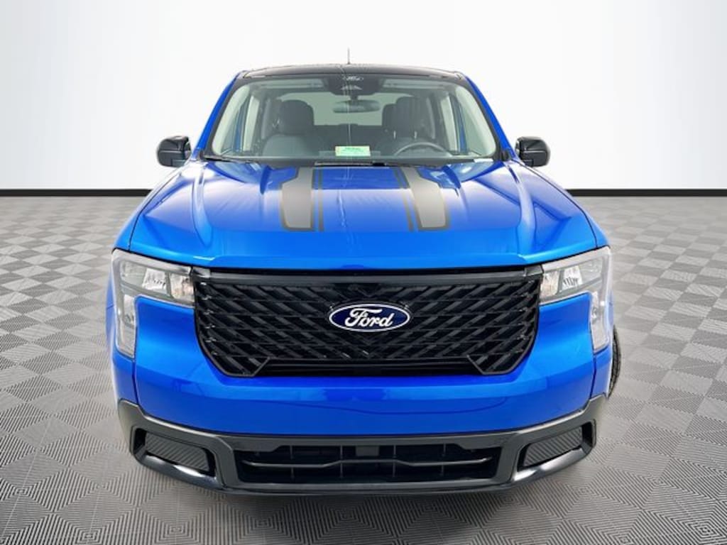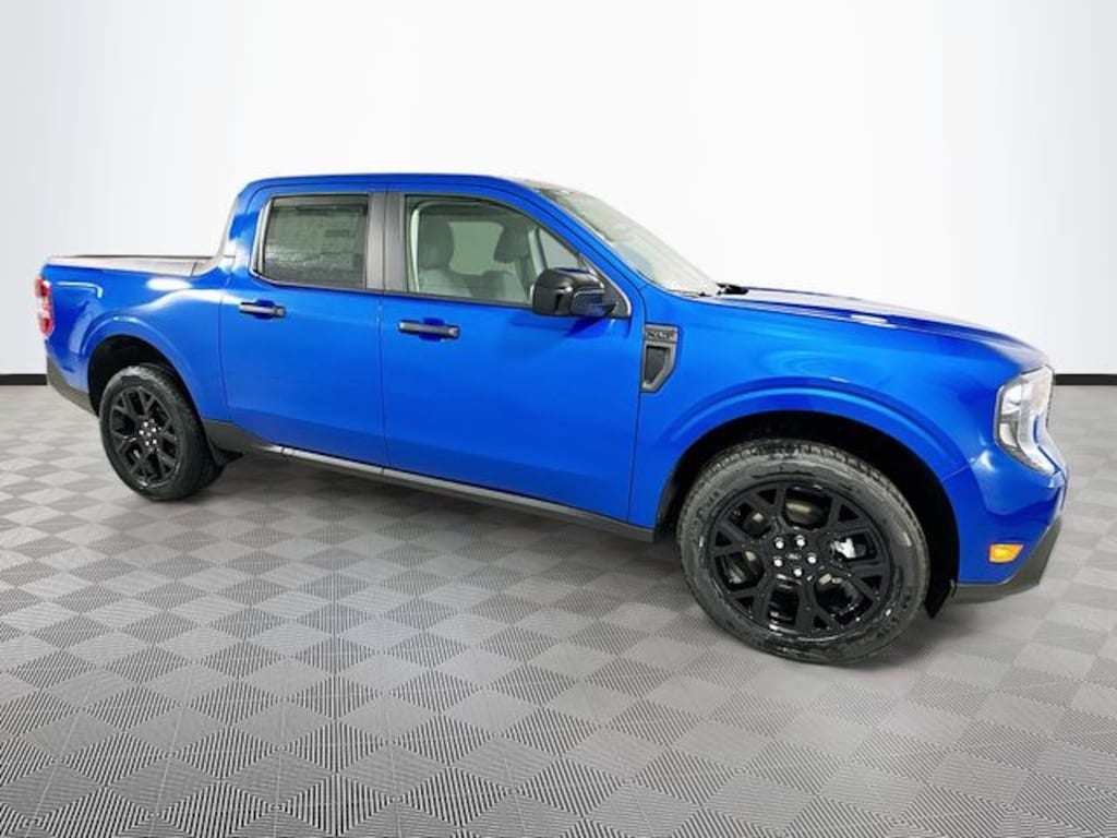 Blue 2026 Ford Maverick XLT AWD 2.5L I-4 Hybrid 4D Crew Cab CVT 2.5L I-4 Hybrid, 2.91 Axle Ratio, 4-Wheel Disc Brakes, 6 Speakers, ABS brakes, Air Conditioning, Alloy wheels, AM/FM radio: SiriusXM with 360L, Apple CarPlay/Android Auto, Auto High Beams, Auto High-beam Headlights, Automatic temperature control, Black Appearance Package, Black Grille, Black Interior Accents, Black Painted Mirrors, BLIS with Cross-Traffic Alert and Trailer Coverage, Brake assist, Bumpers: body-color, Compass, Delay-off headlights, Driver door bin, Driver vanity mirror, Dual front impact airbags, Dual front side impact airbags, Electronic Stability Control, Emergency communication system: SYNC 4 911 Assist, Equipment Group 301A, Exit Warning, Exterior Parking Camera Rear, Ford Co-Pilot360, Ford Connectivity Package (1-Year Included), Four wheel independent suspension, Front and Rear Floor Liners Without Carpet Mats, Front anti-roll bar, Front Bucket Seats, Front Center Armrest, Front reading lights, Fully automatic headlights, Heated Mirror with Painted Black Skull Caps, Heated Seats, Illuminated entry, Internet access capable: 5G Modem - Ford Connectivity Package, Intersection Assist, Knee airbag, Lane-Keeping System, LED Box Lighting, Low tire pressure warning, Occupant sensing airbag, Outside temperature display, Overhead airbag, Overhead console, Panic alarm, Passenger door bin, Passenger vanity mirror, Power door mirrors, Power Glass Manual-Folding Mirrors, Power Moonroof, Power steering, Power windows, Pre-Collision Assist with Automatic Emergency Braking, Pro Power Onboard - 400W, Radio data system, Radio: AM/FM Stereo with 6 Speakers, Rear anti-roll bar, Rear Cross Traffic Braking, Rear Parking Sensors, Rear seat center armrest, Rear step bumper, Rear-View Camera, Remote keyless entry, Remote Start System, Security system, SiriusXM with 360L, SiriusXM with 360L (3-Year Plan), Soft Vinyl Wrapped Heated Steering Wheel, Speed control, Speed-sensing steering, Steering wheel mounted audio controls, SYNC 4 with Enhanced Voice Recognition, Telescoping steering wheel, Tilt steering wheel, Traction control, Trip computer, Unique Cloth Front Bucket Seats, Unique Cloth Front Bucket Seats with Black Appearance, Wheels: 17" Carbonized Gray Painted Aluminum, Wheels: 19" Black Painted Aluminum, XLT Luxury Package, 2.5L I-4 Hybrid.
