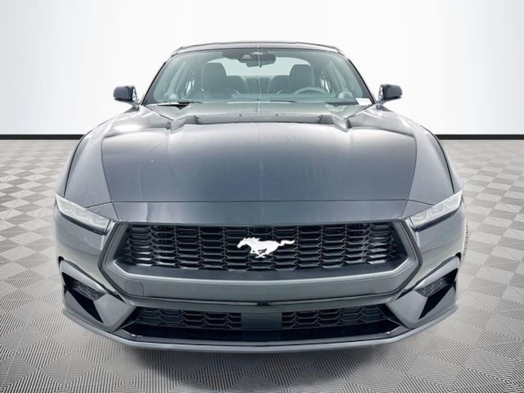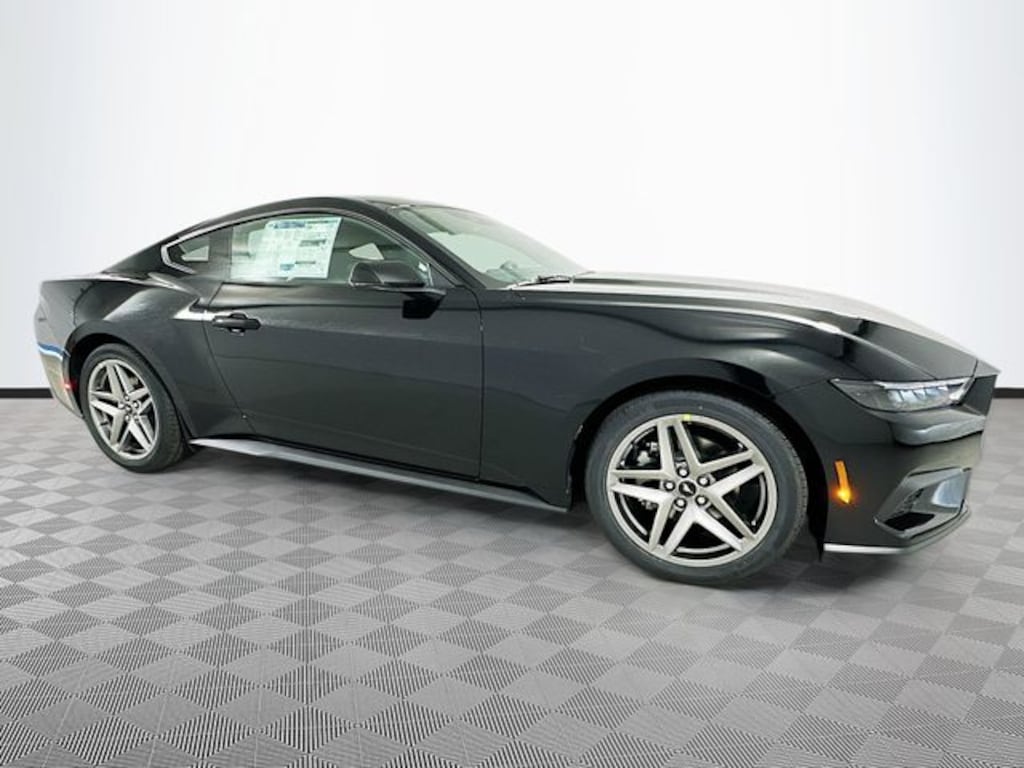 Shadow Black 2026 Ford Mustang EcoBoost Premium RWD EcoBoost 2.3L I4 GTDi DOHC Turbocharged VCT 2D Coupe 10-Speed Automatic 1st Row Carpeted Black Floor Mats, 4-Wheel Disc Brakes, ABS brakes, Air Conditioning, Alloy wheels, AM/FM Stereo, Auto High-beam Headlights, Automatic temperature control, Brake assist, Bumpers: body-color, Compass, Delay-off headlights, Driver door bin, Driver vanity mirror, Dual front impact airbags, Dual front side impact airbags, Electronic Stability Control, Emergency communication system: 911 Assist, Exterior Parking Camera Rear, Ford Connectivity Package (one-Time Purchase - 7 Years), Four wheel independent suspension, Front anti-roll bar, Front Bucket Seats, Front Center Armrest, Front dual zone A/C, Front reading lights, Fully automatic headlights, Illuminated entry, Knee airbag, Leather Shift Knob, Low tire pressure warning, Occupant sensing airbag, Outside temperature display, Overhead airbag, Overhead console, Panic alarm, Passenger door bin, Passenger vanity mirror, Power door mirrors, Power steering, Power windows, Premium Floor Liners Front and Rear (with Carpet Mats), Radio data system, Rain sensing wipers, Rear anti-roll bar, Rear Parking Sensors, Rear window defroster, Remote keyless entry, Speed control, Speed-sensing steering, Speed-Sensitive Wipers, Split folding rear seat, Sport steering wheel, Steering wheel mounted audio controls, SYNC 4, Tachometer, Telescoping steering wheel, Tilt steering wheel, Traction control, Trip computer, Variably intermittent wipers, Voltmeter, Wheels: 18" x 8" Painted Shadow Silver Cast Aluminum, Wheels: 19" x 8.5" Premier Polished Aluminum.