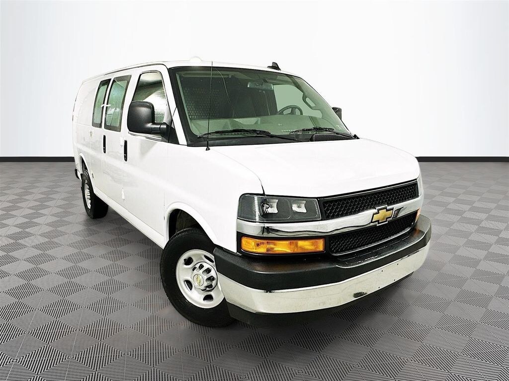 Express 2500 Work Van Cargo, 3D Cargo Van, 4.3L V6, 8-Speed Automatic with Overdrive, Summit White, Jet Black/Medium Dark Pewter Cloth, Chrome Appearance Package, Chrome Grille, Cruise Control, Driver Convenience Package, Front & Rear Chrome Bumpers w/Step-Pad, Preferred Equipment Group 1WT, Tilt Steering Wheel, 16" x 6.5" Steel Wheels, 2 Speakers, 3.42 Rear Axle Ratio, 4-Wheel Disc Brakes, ABS brakes, Air Conditioning, AM/FM radio, AM/FM Stereo w/MP3 Player, Black Rubberized-Vinyl Front Only Floor Covering, Delay-off headlights, Driver & Front Passenger High-Back Bucket Seats, Driver door bin, Driver's Seat Mounted Armrest, Dual front impact airbags, Dual front side impact airbags, Electronic Stability Control, Emergency communication system: OnStar and Chevrolet connected services capable, Engine Cover Console w/Swing-Out Storage Bin, Exterior Parking Camera Rear, Fixed Rear Door Window Glass, Fixed Rear Side Door Window Glass, Front anti-roll bar, Front Bucket Seats, Front Reclining High-Back Bucket Seats, Front wheel independent suspension, Full-Length Black Rubberized-Vinyl Floor Covering, Fully automatic headlights, Heated door mirrors, Low tire pressure warning, Occupant sensing airbag, Overhead airbag, Passenger cancellable airbag, Passenger door bin, Passenger seat mounted armrest, Power door mirrors, Power steering, Power windows, Rear & Side Cargo Door Glass, Rear Side Door Glass Window Security Bar, Reclining Front Bucket Seats w/Inboard Armrests, Single-Zone Manual Air Conditioning, Tachometer, Traction control, Trip computer, Variably intermittent wipers, Vinyl Seat Trim, Voltmeter, Express 2500 Work Van Cargo, 3D Cargo Van, 4.3L V6, 8-Speed Automatic with Overdrive, Summit White, Jet Black/Medium Dark Pewter Cloth, Chrome Appearance Package, Chrome Grille, Cruise Control, Driver Convenience Package, Front & Rear Chrome Bumpers w/Step-Pad, Preferred Equipment Group 1WT, Tilt Steering Wheel.