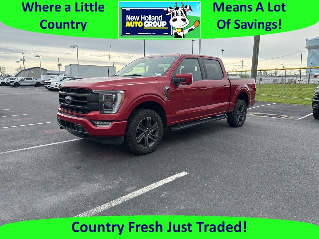 F-150 Lariat, Ford Gold Certified Certified, 4D SuperCrew, 3.5L V6 EcoBoost, 4WD, Red Metallic, Black Leather, 2nd Row Heated Seats, 6" Bright Polished Running Board, Accent-Color Angular Step Bars, Bed Utility Package, Body-Color Front & Rear Bumpers, Box Side Decals, BoxLink, Chrome 2-Bar Grille w/4 Minor Bars, Chrome Door & Tailgate Handles w/Body-Color Bezel, Chrome Single-Tip Exhaust, Chrome Skull Caps on Exterior Mirrors, Class IV Trailer Hitch Receiver, Connected Built-In Navigation, Dark 2-Bar & 1 Minor Bar Style Grille, Equipment Group 502A High, Evasive Steering Assist, Extended Range 36 Gallon Fuel Tank, Ford Co-Pilot360 Assist 2.0 (DISC), Heated Steering Wheel, Integrated Trailer Brake Controller, Intelligent Adaptive Cruise Control w/Stop & Go, Intersection Assist, Lariat Chrome Appearance Package, Lariat Sport Appearance Package, Leather-Trimmed Bucket Seats, LED Box Lighting, LED Projector w/Dynamic Bending Headlamps, Max Trailer Tow Package, Onboard 400W Outlet, Power Glass Sideview Mirr w/Chrome Skull Caps, Power Tailgate, Power Tilt/Telescoping Steering Column w/Memory, Pro Trailer Backup Assist, Radio: B&O Sound System by Bang & Olufsen, Rain-Sensing Wipers, Speed Sign Recognition, Tailgate Step w/Tailgate Work Surface, Universal Garage Door Opener, Wheels: 18" 6-Spoke Machined Aluminum, Wheels: 18" Chrome-Like PVD, Wireless Charging Pad, 18" Machined-Aluminum Wheels, 360 Degree Camera, 4-Wheel Disc Brakes, 7 Speakers, ABS brakes, Adjustable pedals, Air Conditioning, Alloy wheels, AM/FM radio: SiriusXM with 360L, Auto High-beam Headlights, Auto Start-Stop Removal, Auto-dimming door mirrors, Auto-dimming Rear-View mirror, Automatic temperature control, Brake assist, Bumpers: chrome, Compass, Delay-off headlights, Driver door bin, Driver vanity mirror, Dual front impact airbags, Dual front side impact airbags, Electronic Stability Control, Emergency communication system: SYNC 4 911 Assist, Exterior Parking Camera Rear, Front anti-roll bar, Front Center Armrest w/Storage, Front dual zone A/C, Front fog lights, Front reading lights, Front wheel independent suspension, Fully automatic headlights, Heated door mirrors, Heated front seats, Illuminated entry, Leather-Trimmed 40/20/40 Front Seat, Low tire pressure warning, Memory seat, Occupant sensing airbag, Outside temperature display, Overhead airbag, Overhead console, Panic alarm, Passenger door bin, Passenger vanity mirror, Pedal memory, Power door mirrors, Power driver seat, Power passenger seat, Power steering, Power windows, Radio data system, Radio: AM/FM SiriusXM w/360L, Radio: B&