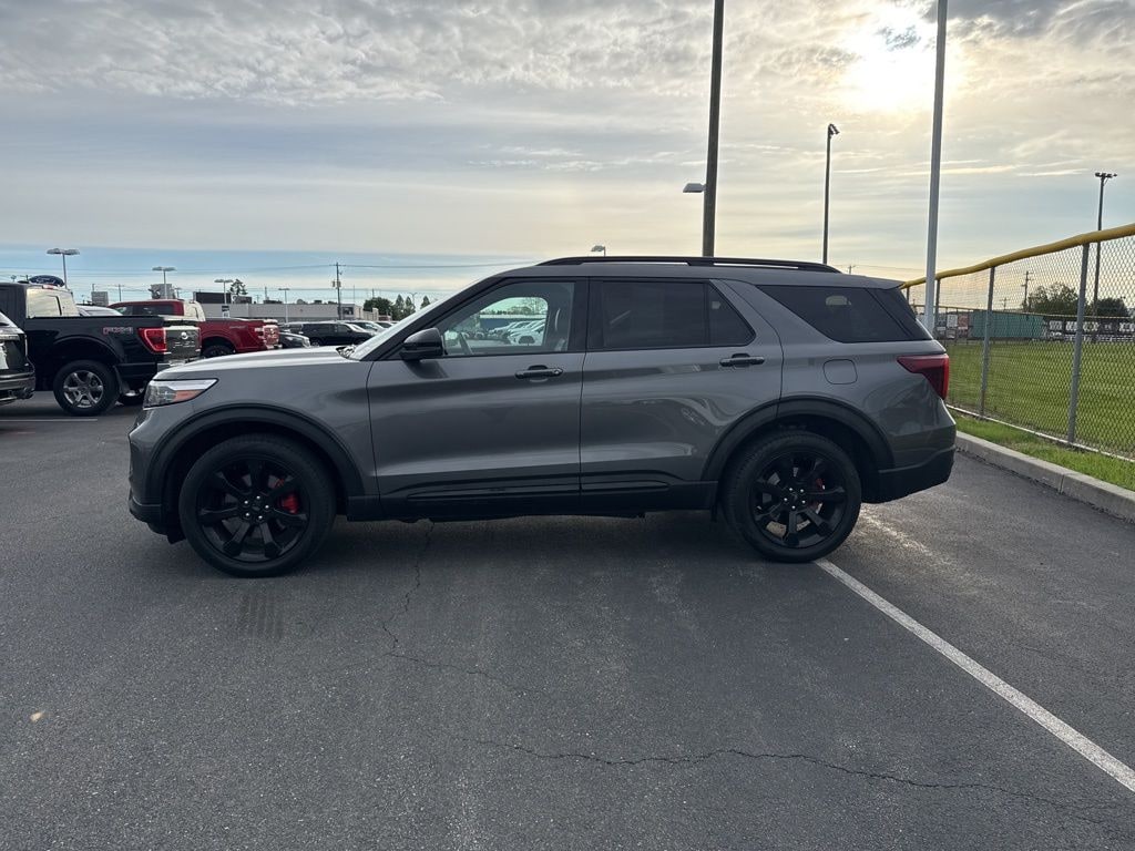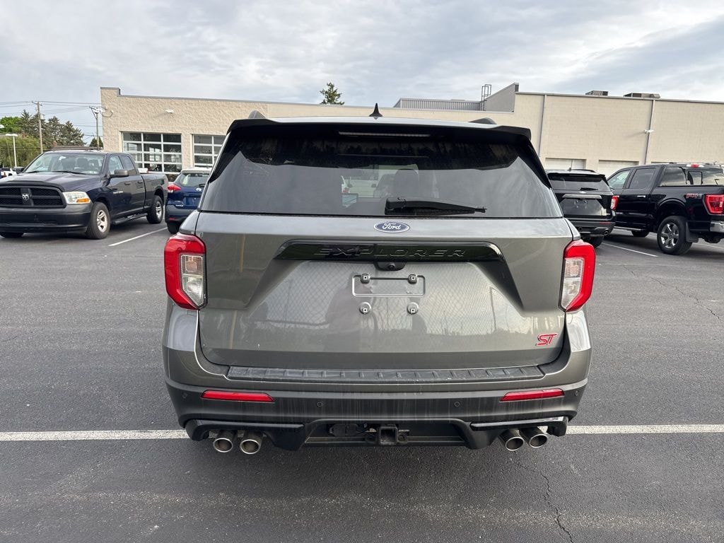Explorer ST, Ford Gold Certified Certified, 3.0L EcoBoost V6, 4WD, Gray Metallic, Ebony Leather, 10.1" LCD Capacitive Portrait Touchscreen, 110V/150W AC Power Outlet, 2 Additional Speakers, 360-Degree Camera w/Split View, 6 Speakers, AM/FM radio: SiriusXM, AM/FM Stereo, Auto-Dimming Rearview Mirror (Interior), Equipment Group 401A, Evasive Steering Assist, Ford Co-Pilot360 Assist+, FordPass Connect, Front Parking Sensors, Front Rain-Sensing Wipers, High-Performance Front & Rear Brakes, Intelligent Adaptive Cruise Control, Memory Driver's Seat, Performance Front & Rear Brakes, Power Tilt/Telescoping Steering Column, Radio: B&O Sound System by Bang & Olufsen, Reverse Brake Assist, Second Row Heated Seats, Sideview Mirrors w/Gloss Black Caps, Speed Sign Recognition, ST High Package, ST High-Performance Pack, ST Street Pack, SYNC 3 Communications & Entertainment System, Technology Package, Third Row PowerFold (Folds Flat), Universal Garage Door Opener (UGDO), Voice-Activated Touchscreen Navigation System, Wheels: 21" Aluminum, Wireless Charging Pad, 20" Machined Aluminum w/Painted Pockets Wheels, 3.58 Non-Limited-Slip Rear Axle Ratio, 3rd row seats: bench, 4-Wheel Disc Brakes, 4G LTE Wi-Fi Hotspot Credit, ABS brakes, Air Conditioning, Alloy wheels, Auto High-beam Headlights, Automatic temperature control, Brake assist, Bumpers: body-color, Compass, Delay-off headlights, Driver door bin, Driver vanity mirror, Dual front impact airbags, Dual front side impact airbags, Electronic Stability Control, Emergency communication system: SYNC 3 911 Assist, Exterior Parking Camera Rear, Four wheel independent suspension, Front anti-roll bar, Front Bucket Seats, Front Center Armrest, Front dual zone A/C, Front fog lights, Front License Plate Bracket, Front reading lights, Fully automatic headlights, Heated door mirrors, Heated front seats, Heated steering wheel, Illuminated entry, Knee airbag, Leather Htd/Ventilated Sport Captain's Chairs, Leather steering wheel, Low tire pressure warning, Memory seat, Occupant sensing airbag, Outside temperature display, Overhead airbag, Overhead console, Panic alarm, Passenger door bin, Passenger vanity mirror, Power door mirrors, Power driver seat, Power Liftgate, Power passenger seat, Power steering, Power windows, Rear air conditioning, Rear anti-roll bar, Rear reading lights, Rear window defroster, Rear window wiper, Remote keyless entry, Security system, SelectShift Capability w/Paddle Shifters, Speed control, Speed-sensing steering, Speed-Sensitive Wipers, Split folding rear seat, Spoiler, Sport steering wheel, Steering