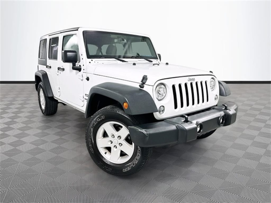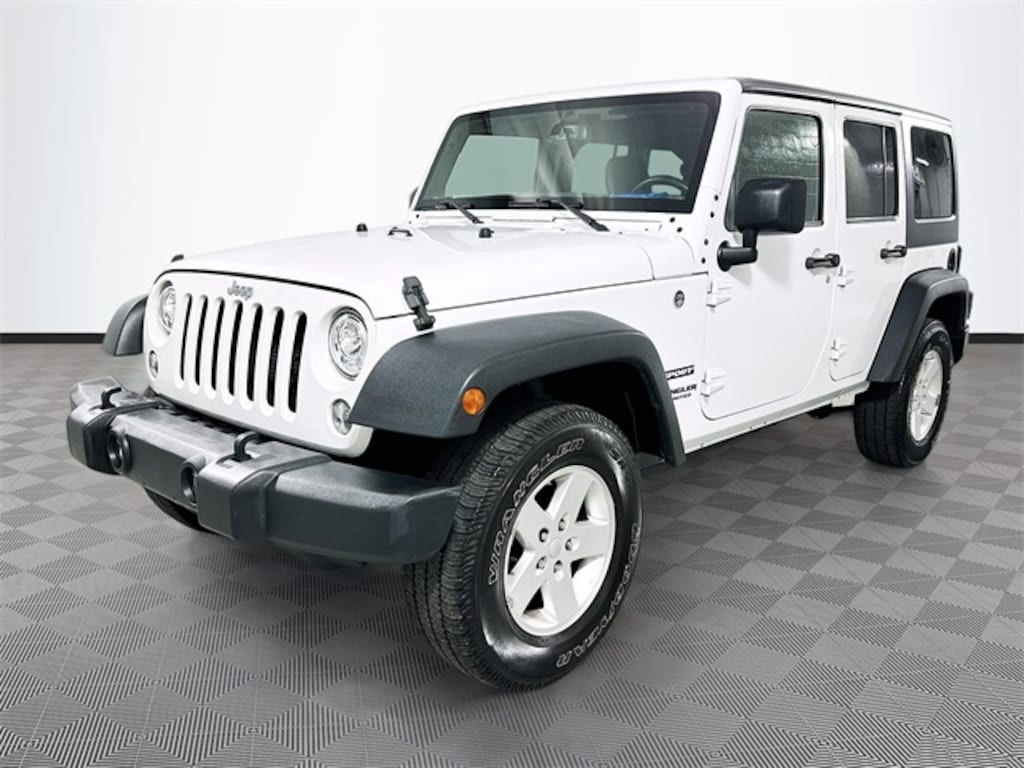Wrangler Unlimited Sport, Ford Blue Advantage: Blue Certified Certified, 4D Sport Utility, 3.6L V6 24V VVT, 4WD, Bright White Clearcoat, Black Cloth, 1-Yr SiriusXM Radio Service, 8 Speakers, AM/FM radio, Black 3-Piece Hard Top, CD player, Connectivity Group, Delete Sunrider Soft Top, Dual Top Group, Freedom Panel Storage Bag, LED Fog Lamps, LED Lighting Group, LED Reflector Headlamps, Premium Black Sunrider Soft Top, Radio: 130, Rear Window Defroster, Rear Window Wiper/Washer, Remote USB Port, Tire Pressure Monitoring Display, Uconnect Voice Command w/Bluetooth, Vehicle Information Center, 16" x 7.0" Luxury Styled Steel Wheels, 17" x 7.5" Aluminum Wheels, 3.21 Rear Axle Ratio, 4-Wheel Disc Brakes, ABS brakes, Air Conditioning, Auto-Dimming Mirror w/Reading Lamp, Brake assist, Chrome/Leather Wrapped Shift Knob, Cloth Seats w/Adjustable Head Restraints, Compass, Deep Tint Sunscreen Windows, Driver door bin, Driver vanity mirror, Dual front impact airbags, Electronic Stability Control, Front 1-Touch Down Power Windows, Front anti-roll bar, Front Bucket Seats, Front Center Armrest w/Storage, Front fog lights, Integrated roll-over protection, Leather Wrapped Steering Wheel, Low tire pressure warning, MOPAR Slush Mats, Normal Duty Suspension, Occupant sensing airbag, Outside temperature display, Passenger door bin, Passenger vanity mirror, Power Convenience Group, Power Heated Mirrors, Power Locks, Power steering, Quick Order Package 24S, Rear anti-roll bar, Remote Keyless Entry, Security Alarm, SIRIUS Satellite Radio, Speed control, Split folding rear seat, Steering wheel mounted audio controls, Tachometer, Tilt steering wheel, Traction control, Trip computer, Variably intermittent wipers, Wrangler Unlimited Sport, 4D Sport Utility, 3.6L V6 24V VVT, 4WD, Bright White Clearcoat, Black Cloth, 1-Yr SiriusXM Radio Service, 8 Speakers, AM/FM radio, Black 3-Piece Hard Top, CD player, Connectivity Group, Delete Sunrider Soft Top, Dual Top Group, Freedom Panel Storage Bag, LED Fog Lamps, LED Lighting Group, LED Reflector Headlamps, Premium Black Sunrider Soft Top, Radio: 130, Rear Window Defroster, Rear Window Wiper/Washer, Remote USB Port, Tire Pressure Monitoring Display, Uconnect Voice Command w/Bluetooth, Vehicle Information Center.