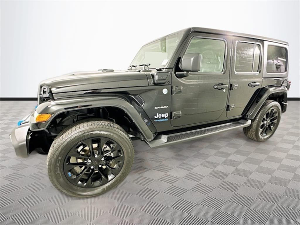 Wrangler Unlimited Sahara 4xe, FCA US LLC Certified Pre-Owned Certified, 2.0L I4 DOHC, 4WD, Black Clearcoat, Black Leather, Cold Weather Group, Heated Front Seats, Heated Steering Wheel, Navigation System, Quick Order Package 29P, Remote Start System, 3.73 Rear Axle Ratio, 4-Wheel Disc Brakes, 9 Speakers, ABS brakes, Air Conditioning, Alloy wheels, AM/FM radio, Apple CarPlay/Android Auto, Auto-dimming Rear-View mirror, Automatic temperature control, Black 3-Piece Hard Top, Brake assist, Compass, Corning Gorilla Glass, Delay-off headlights, Driver door bin, Driver vanity mirror, Dual front impact airbags, Dual front side impact airbags, Electronic Stability Control, Emergency communication system: SiriusXM Guardian, Freedom Panel Storage Bag, Front anti-roll bar, Front Bucket Seats, Front Center Armrest w/Storage, Front dual zone A/C, Front fog lights, Front License Plate Bracket, Front reading lights, Fully automatic headlights, Garage door transmitter, Heated door mirrors, Illuminated entry, Integrated roll-over protection, Leather Shift Knob, Leather steering wheel, Low tire pressure warning, No Soft Top, Occupant sensing airbag, Outside temperature display, Panic alarm, ParkView Rear Back-Up Camera, Passenger door bin, Passenger vanity mirror, Power door mirrors, Power steering, Power windows, Premium McKinley Trimmed Seats, Radio data system, Radio: Uconnect 4C Nav w/8.4" Display, Rear anti-roll bar, Rear reading lights, Rear seat center armrest, Rear Window Defroster, Rear Window Wiper/Washer, Remote keyless entry, Security system, Speed control, Split folding rear seat, Sport Suspension, Steering wheel mounted audio controls, Tachometer, Telescoping steering wheel, Tilt steering wheel, Traction control, Trip computer, Variably intermittent wipers, Voltmeter, Wheels: 20" x 8" Fully Painted Aluminum, Wrangler Unlimited Sahara 4xe, 2.0L I4 DOHC, 4WD, Black Clearcoat, Black Leather, Cold Weather Group, Heated Front Seats, Heated Steering Wheel, Navigation System, Quick Order Package 29P, Remote Start System.