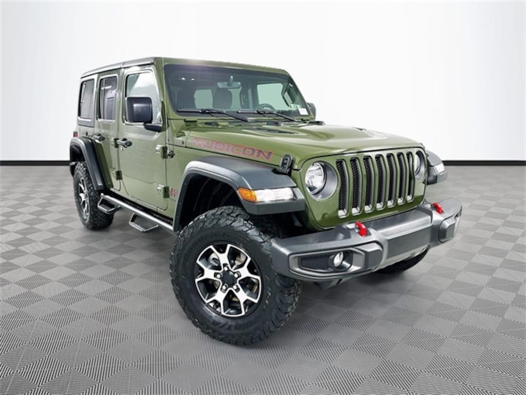 *ONE OWNER, *LOCAL TRADE, Wrangler Rubicon, FCA US LLC Certified Pre-Owned Certified, 4D Sport Utility, 3.6L V6 24V VVT, 4WD, Sarge Green Clearcoat, Black Cloth, 240 Amp Alternator, 7 & 4 Pin Wiring Harness, 700 Amp Maintenance Free Battery, 9 Speakers, Air Conditioning, AM/FM radio: SiriusXM, Automatic temperature control, Auxiliary Switches, Class II Receiver Hitch, Cold Weather Group, Freedom Panel Storage Bag, Heated Front Seats, Heated Steering Wheel, Navigation System, Premium Cloth Low-Back Bucket Seats, Quick Order Package 25R Rubicon, Radio data system, Radio: Uconnect 4C Nav w/8.4" Display, Split folding rear seat, Trailer Tow & Aux Switch Group, 4-Wheel Disc Brakes, 4.10 Rear Axle Ratio, ABS brakes, Alloy wheels, Apple CarPlay/Android Auto, Auto-dimming Rear-View mirror, Aux Battery, Black 3-Piece Hard Top, Brake assist, Compass, Delay-off headlights, Driver door bin, Driver vanity mirror, Dual front impact airbags, Dual front side impact airbags, Electronic Stability Control, Emergency communication system: SiriusXM Guardian, Engine Oil Cooler, Front anti-roll bar, Front Bucket Seats, Front Center Armrest w/Storage, Front Differential Electronic Lock w/Axle Disconnect, Front dual zone A/C, Front fog lights, Front License Plate Bracket, Front reading lights, Fully automatic headlights, Garage door transmitter, Heated door mirrors, Illuminated entry, Integrated roll-over protection, Low tire pressure warning, MOPAR All-Weather Floor Mats, No Soft Top, Non-Lock Fuel Cap w/o Discriminator, Occupant sensing airbag, Outside temperature display, Panic alarm, ParkView Rear Back-Up Camera, Passenger door bin, Passenger vanity mirror, Performance Suspension, Power door mirrors, Power steering, Power windows, Rear anti-roll bar, Rear reading lights, Rear Window Defroster, Rear Window Wiper/Washer, Remote keyless entry, Security system, Speed control, Steering wheel mounted audio controls, Stop-Start Dual Battery System, Tachometer, Telescoping steering wheel, Tilt steering wheel, Traction control, Trip computer, Variably intermittent wipers, Voltmeter, Wheels: 17" x 7.5" Machined w/Black Pockets, Wheels: 17" x 7.5" Machined/Painted Black, Wrangler Rubicon, 4D Sport Utility, 3.6L V6 24V VVT, 4WD, Sarge Green Clearcoat, Black Cloth, 240 Amp Alternator, 7 & 4 Pin Wiring Harness, 700 Amp Maintenance Free Battery, 9 Speakers, Air Conditioning, AM/FM radio: SiriusXM, Automatic temperature control, Auxiliary Switches, Cla