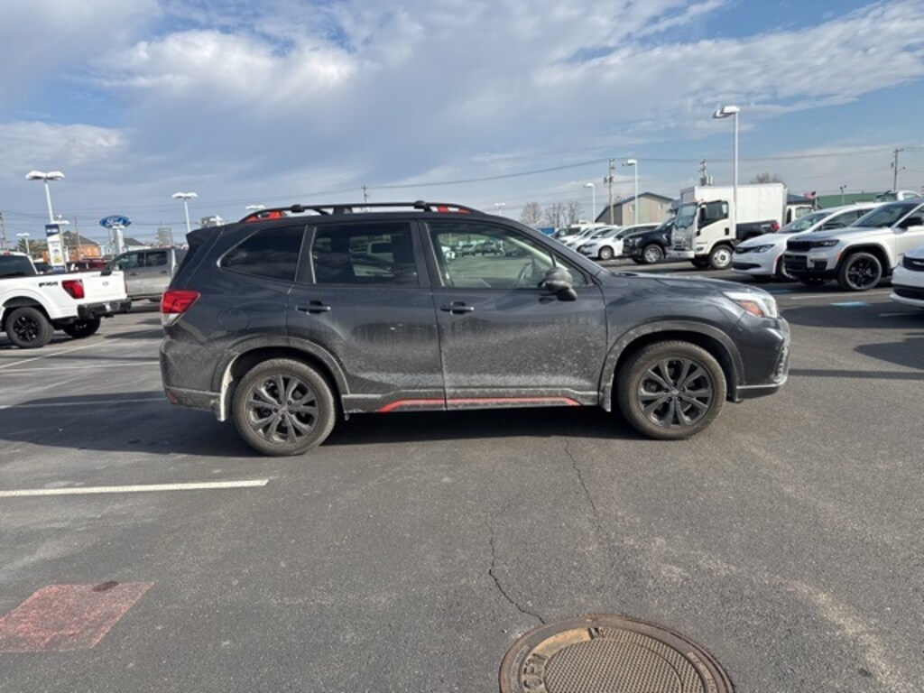 Forester Sport, 2.5L 4-Cylinder DOHC 16V VVT, AWD, Dark Gray Metallic, Gray Cloth, 3.70 Axle Ratio, 4-Wheel Disc Brakes, 6 Speakers, ABS brakes, Aero Crossbar Set, Air Conditioning, All-Weather Floor Liners, Alloy wheels, AM/FM radio: SiriusXM, Auto High-beam Headlights, Auto-Dimming Mirror w/Compass & HomeLink, Automatic temperature control, Blind Spot Detection w/Rear Cross Traffic Alert, Brake assist, BSD & Rev Auto Brake & harman kardon & Pwr Rr Gate, Bumpers: body-color, CD player, Driver door bin, Driver vanity mirror, Dual front impact airbags, Dual front side impact airbags, Electronic Stability Control, Emergency communication system: STARLINK Safety and Security, Exterior Parking Camera Rear, Four wheel independent suspension, Front anti-roll bar, Front Bucket Seats, Front Center Armrest, Front fog lights, Front reading lights, Fully automatic headlights, harman kardon 576W Amp & Speaker System, Heated door mirrors, Heated Front Bucket Seats, Heated front seats, Illuminated entry, Knee airbag, Leather Shift Knob, Low tire pressure warning, Occupant sensing airbag, Outside temperature display, Overhead airbag, Overhead console, Paddle-Shift Control Switches, Panic alarm, Passenger door bin, Passenger vanity mirror, Power door mirrors, Power driver seat, Power moonroof: Panoramic, Power Rear Gate, Power steering, Power windows, Radio data system, Radio: Subaru Starlink 6.5" Multimedia Plus System, Radio: Subaru Starlink 8.0" Multimedia Plus System, Rear anti-roll bar, Rear Bumper Cover, Rear seat center armrest, Rear Seatback Protector, Rear window defroster, Rear window wiper, Remote keyless entry, Reverse Automatic Braking System (RAB), Roof rack: rails only, Security system, Speed control, Speed-sensing steering, Splash Guards, Split folding rear seat, Spoiler, Sport Cloth Upholstery, STARLINK/Apple CarPlay/Android Auto, Steering wheel mounted audio controls, Tachometer, Telescoping steering wheel, Tilt steering wheel, Traction control, Trip computer, Turn signal indicator mirrors, Variably intermittent wipers, Wheels: 18" x 7.0J Black Finish Aluminum Alloy, Forester Sport, 2.5L 4-Cylinder DOHC 16V VVT, AWD, Dark Gray Metallic, Gray Cloth.