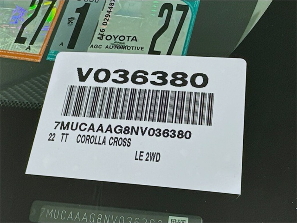 Corolla Cross LE, Toyota Gold Certified Certified, 4D Sport Utility, 2.0L I4 PDI DOHC 16V LEV3-SULEV30 169hp, FWD, 6 Speakers, Automatic temperature control, Radio data system, Radio: 6 Speaker Audio, 17" Alloy Wheels, 4-Wheel Disc Brakes, 4.014 Axle Ratio, ABS brakes, Air Conditioning, Alloy wheels, Apple CarPlay/Android Auto, Auto High-beam Headlights, Brake assist, Bumpers: body-color, Delay-off headlights, Driver door bin, Driver vanity mirror, Dual front impact airbags, Dual front side impact airbags, Electronic Stability Control, Emergency communication system: Safety Connect with 1-year trial, Exterior Parking Camera Rear, Fabric Seat Trim, Front anti-roll bar, Front Bucket Seats, Front Center Armrest, Front reading lights, Front wheel independent suspension, Fully automatic headlights, Heated door mirrors, Illuminated entry, Knee airbag, Leather steering wheel, Low tire pressure warning, Occupant sensing airbag, Outside temperature display, Overhead airbag, Panic alarm, Passenger door bin, Passenger vanity mirror, Power door mirrors, Power steering, Power windows, Rear anti-roll bar, Rear side impact airbag, Rear window defroster, Rear window wiper, Remote keyless entry, Roof rack: rails only, Security system, Speed control, Split folding rear seat, Spoiler, Steering wheel mounted audio controls, Tachometer, Telescoping steering wheel, Tilt steering wheel, Traction control, Trip computer, Turn signal indicator mirrors, Variably intermittent wipers, Corolla Cross LE, 4D Sport Utility, 2.0L I4 PDI DOHC 16V LEV3-SULEV30 169hp, FWD, 6 Speakers, Automatic temperature control, Radio data system, Radio: 6 Speaker Audio.