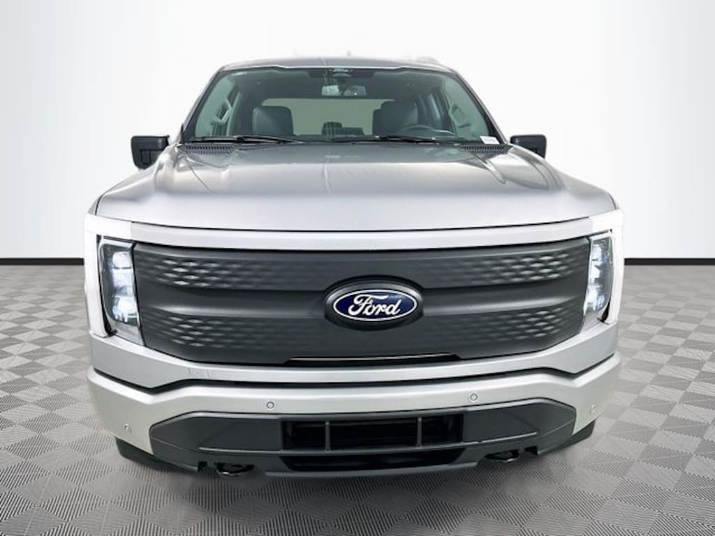 Silver Metallic 2025 Ford F-150 Lightning Flash AWD Electric Motor 4D Crew Cab Single-Speed Automatic 4-Wheel Disc Brakes, 8 Speakers, ABS brakes, ActiveX Trimmed Heated Front Seats, Adjustable pedals, Air Conditioning, Alloy wheels, Auto High-beam Headlights, Auto-dimming Rear-View mirror, Automatic temperature control, Brake assist, Bumpers: body-color, Compass, Delay-off headlights, Driver door bin, Driver vanity mirror, Dual front impact airbags, Dual front side impact airbags, E-Locker, Electronic Stability Control, Emergency communication system: SYNC 4 911 Assist, Equipment Group 312A Standard, Four wheel independent suspension, Front anti-roll bar, Front Bucket Seats, Front Center Armrest, Front dual zone A/C, Front License Plate Bracket, Front reading lights, Fully automatic headlights, Heated door mirrors, Heated front seats, Heated steering wheel, Hill Decent Control, Illuminated entry, Internet access capable: FordPass Connect 4G, Knee airbag, Low tire pressure warning, Max Trailer Tow Package, Mobile Power Cord (120/240V), Navigation system: Connected Navigation, Occupant sensing airbag, Outside temperature display, Overhead airbag, Overhead console, Panic alarm, Passenger door bin, Passenger vanity mirror, Power door mirrors, Power driver seat, Power passenger seat, Power steering, Power windows, Radio data system, Radio: B&O Sound System by Bang & Olufsen, Rear anti-roll bar, Rear reading lights, Rear step bumper, Rear window defroster, Remote keyless entry, Security system, Speed control, Speed-sensing steering, Split folding rear seat, Steering wheel mounted audio controls, SYNC 4A w/Enhanced Voice Recognition, Tailgate Step w/Tailgate Work Surface, Telescoping steering wheel, Tilt steering wheel, Traction control, Trailer Brake Controller, Tray Style Floor Liner w/o Carpet Mats, Trip computer, Turn signal indicator mirrors, Variably intermittent wipers, Wheels: 20" Alloy Dark Carbonized Gray.