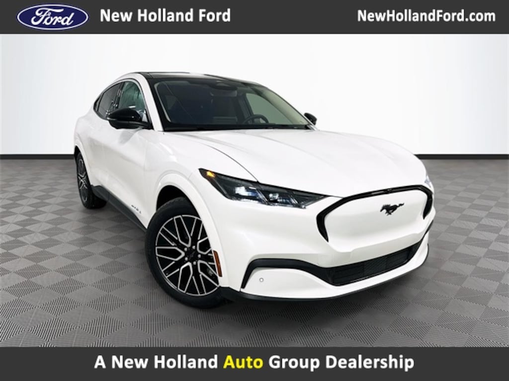 Star White Metallic Tri-Coat 2025 Ford Mustang Mach-E Premium AWD Dual Electric Motor 4D Sport Utility Single-Speed Automatic 1st & 2nd Row Floor Liners w/o Carpet Mats, Cargo Area Cover, Cargo Floor Liner, Equipment Group 300A Standard Package, Heated front seats, Heated/Ventilated Perforated ActiveX Bucket Seats, Interior Protection Package, Navigation system: Connected Navigation, Radio: B&O Sound System by Bang & Olufsen, SiriusXM w/360L, SYNC 4A w/Enhanced Voice Recognition, 10 Speakers, 4-Wheel Disc Brakes, ABS brakes, Air Conditioning, Alloy wheels, AM/FM radio: SiriusXM with 360L, Apple CarPlay/Android Auto, Auto High-beam Headlights, Auto-dimming Rear-View mirror, Automatic temperature control, BlueCruise Equipped (1-Year Plan), Brake assist, Bumpers: body-color, Compass, Delay-off headlights, Driver door bin, Driver vanity mirror, Dual front impact airbags, Dual front side impact airbags, Electronic Stability Control, Emergency communication system: 911 Assist, Exterior Parking Camera Rear, Four wheel independent suspension, Front anti-roll bar, Front Bucket Seats, Front Center Armrest, Front dual zone A/C, Front reading lights, Fully automatic headlights, Garage door transmitter, Heated door mirrors, Heated steering wheel, Illuminated entry, Knee airbag, Low tire pressure warning, Memory seat, Mobile Power Cord (120V/240V), Occupant sensing airbag, Outside temperature display, Overhead airbag, Overhead console, Panic alarm, Panoramic Fixed-Glass Roof, Passenger door bin, Passenger vanity mirror, Power door mirrors, Power driver seat, Power Liftgate, Power passenger seat, Power steering, Power windows, Radio data system, Rain sensing wipers, Rear anti-roll bar, Rear seat center armrest, Rear side impact airbag, Rear window defroster, Rear window wiper, Remote keyless entry, Security system, Speed control, Speed-sensing steering, Speed-Sensitive Wipers, Split folding rear seat, Spoiler, Steering wheel mounted audio controls, Telescoping steering wheel, Tilt steering wheel, Tire Inflator & Sealant Kit, Traction control, Trip computer, Turn signal indicator mirrors, Variably intermittent wipers, Ventilated front seats, Wheels: 19" Bright Machined-Face Aluminum, 1st & 2nd Row Floor Liners w/o Carpet Mats, Cargo Area Cover, Cargo Floor Liner, Equipment Group 300A Standard Package, Heated front seats, Heated/Ventilated Perforated ActiveX Bucket Seats, Interior Protection Package, Navigation system: Connected Navigation, Radio: B&O Sound System by Bang & Olufsen, SiriusXM w/360L, SYNC 4A w/Enhanced Voice Recognition.
